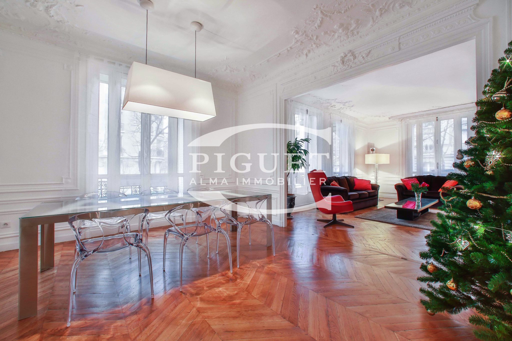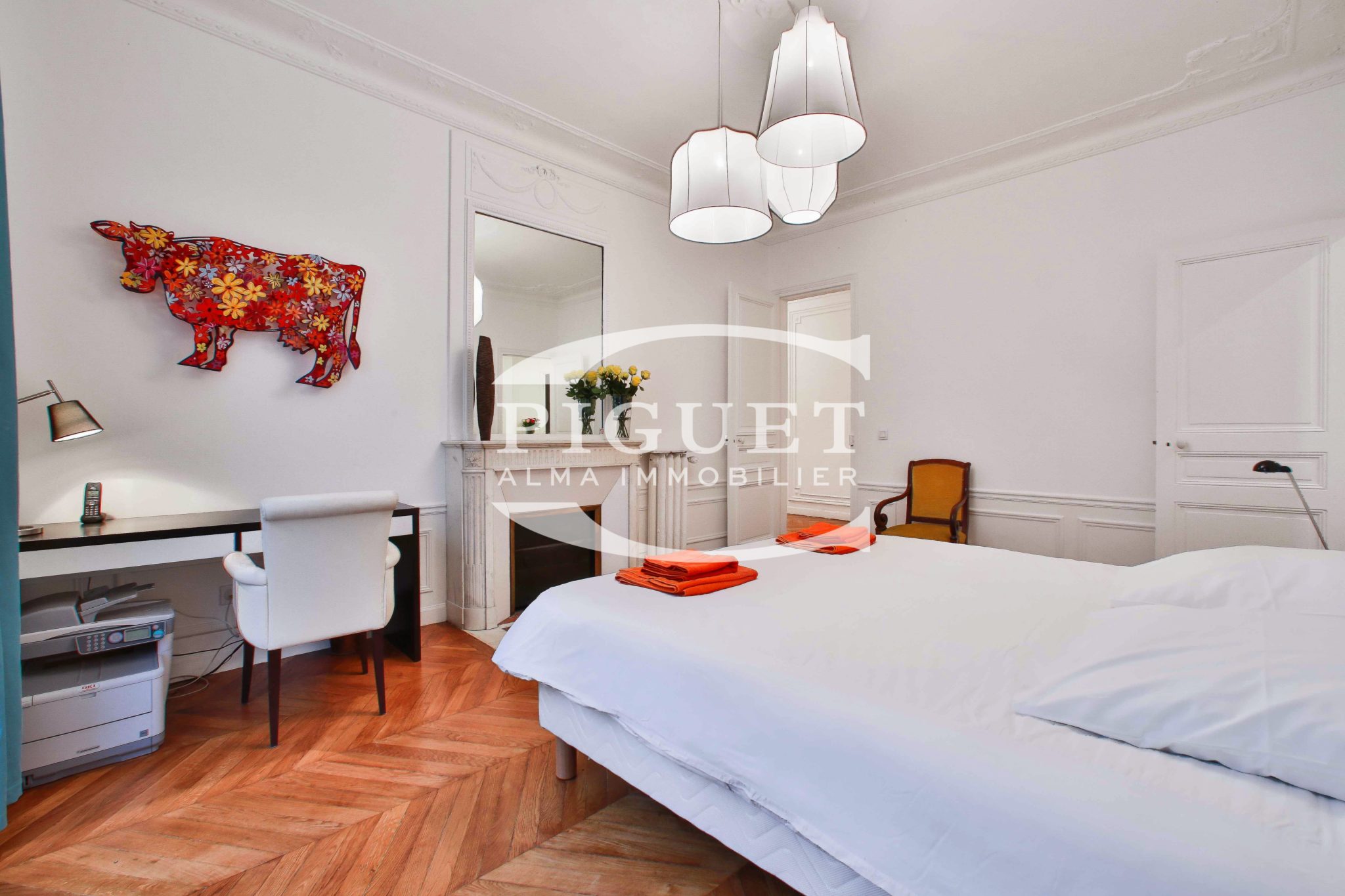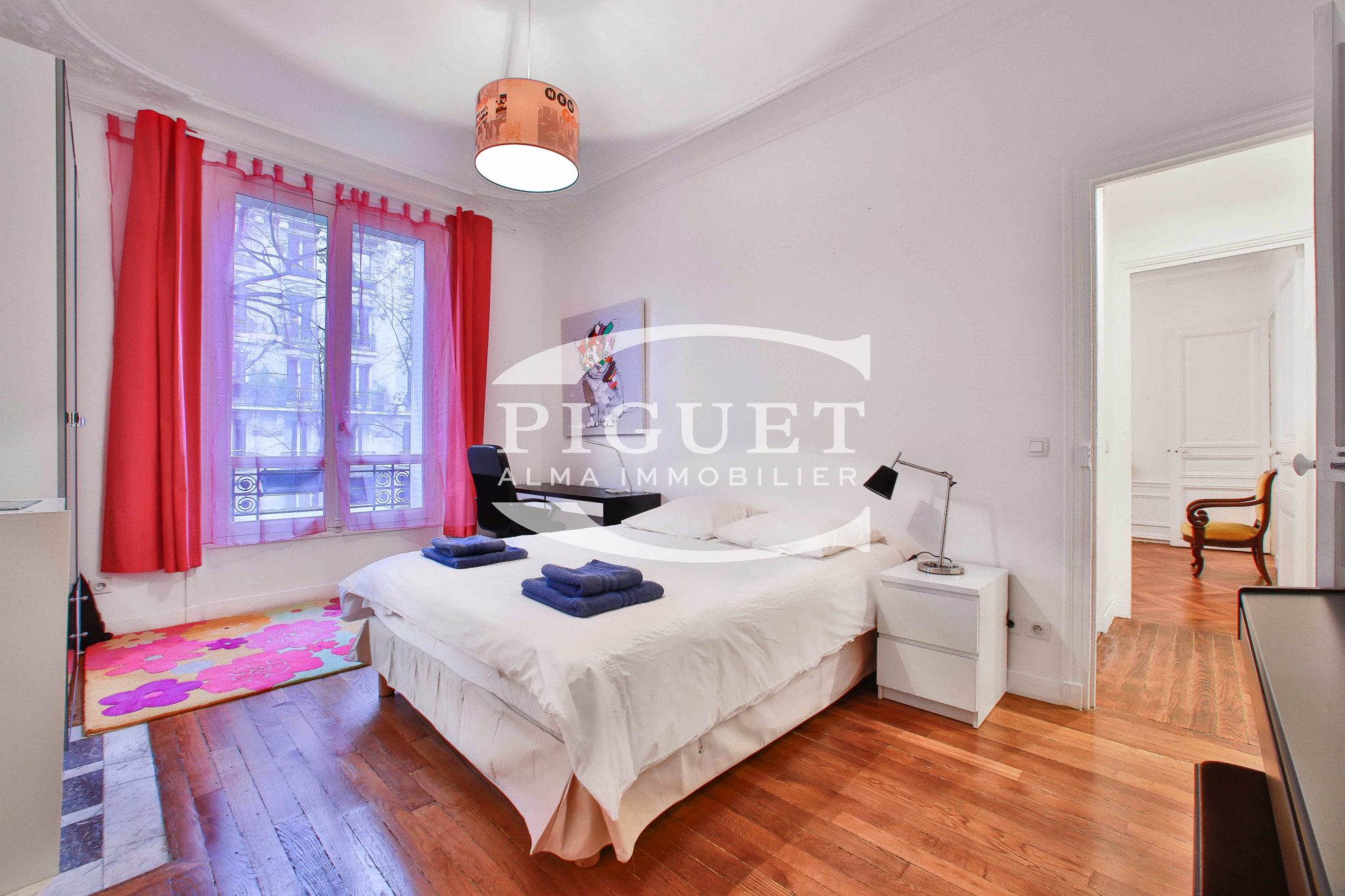 A proximité du Champ de Mars, au 1ER étage d’un très bel immeuble en pierre de taille du début du siècle dernier – un magnifique appartement entièrement refait de 5 pièces offrant de belles prestations, exposé Ouest, parquet, moulures, et cheminée, au calme le plus complet, plan fonctionnel.