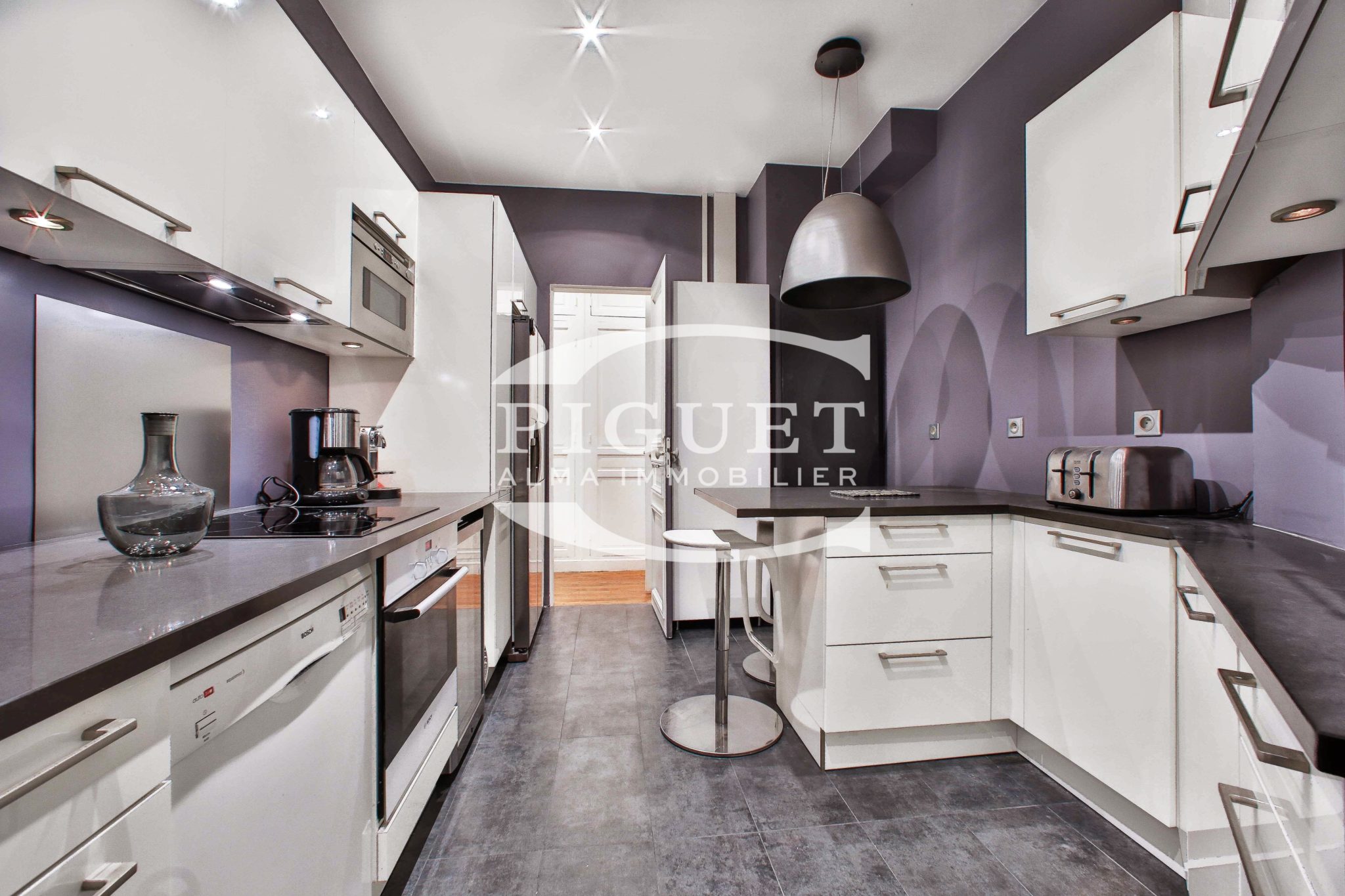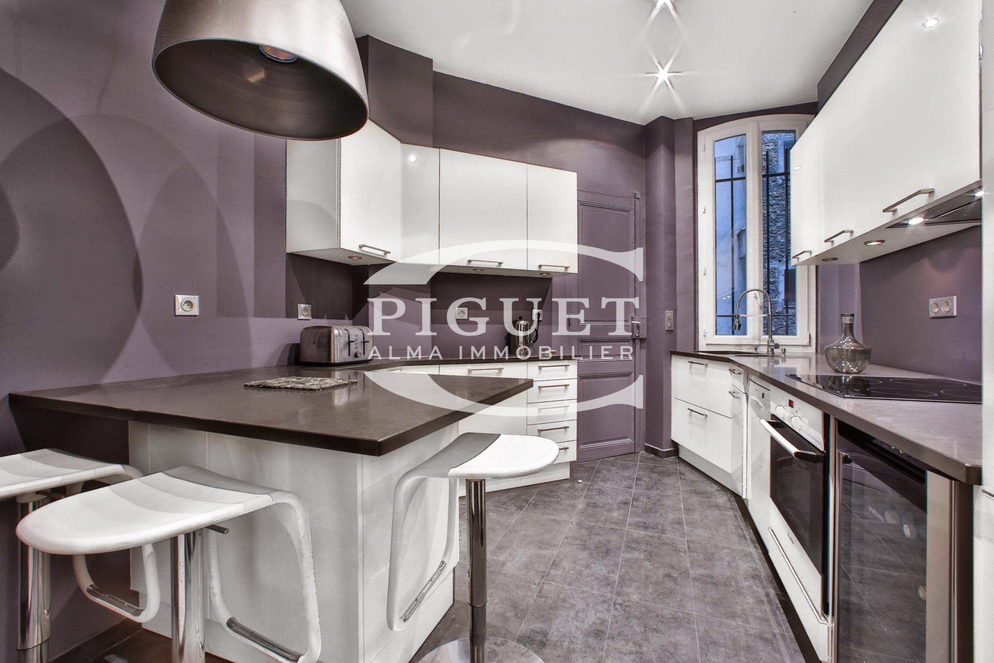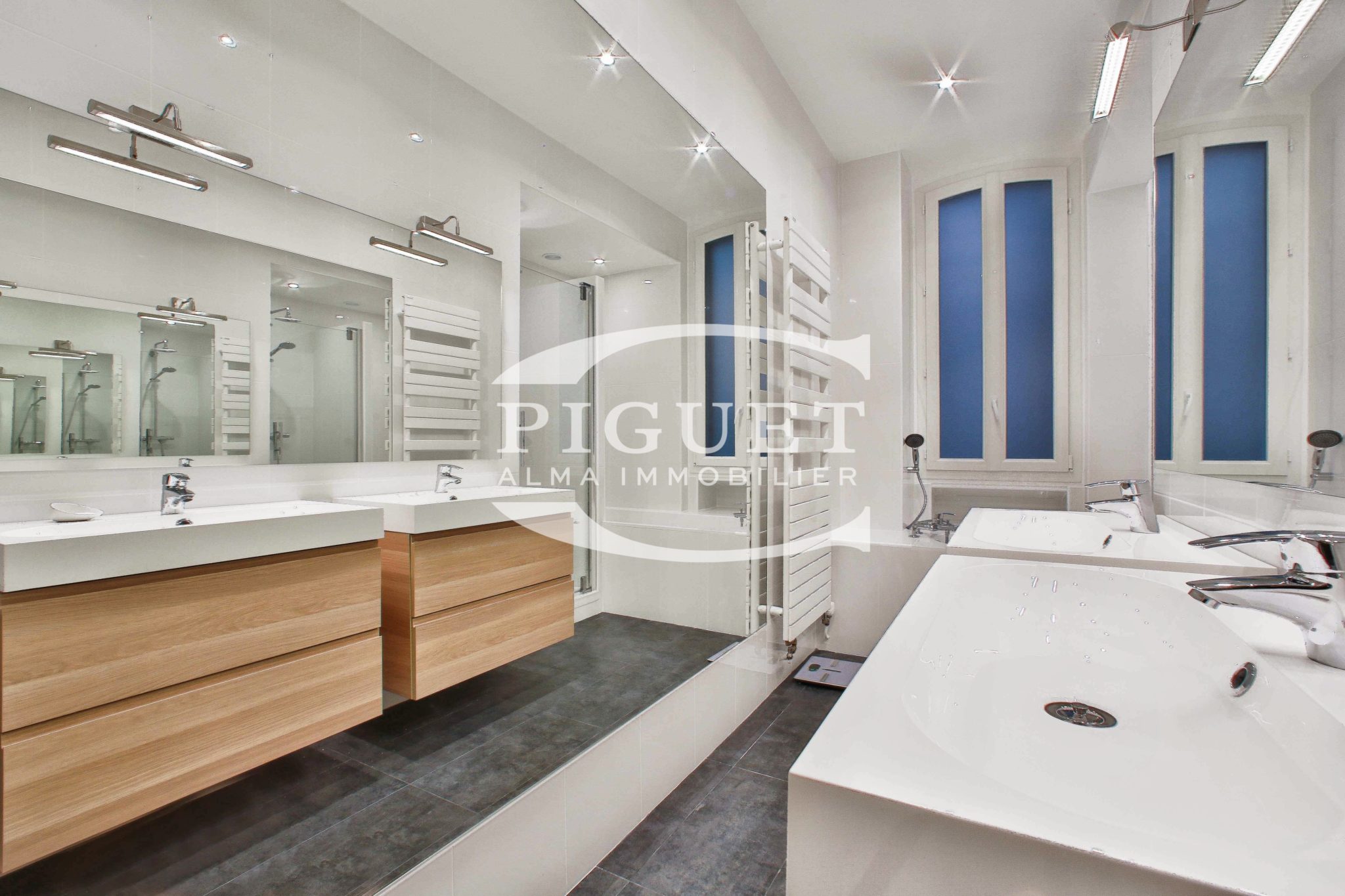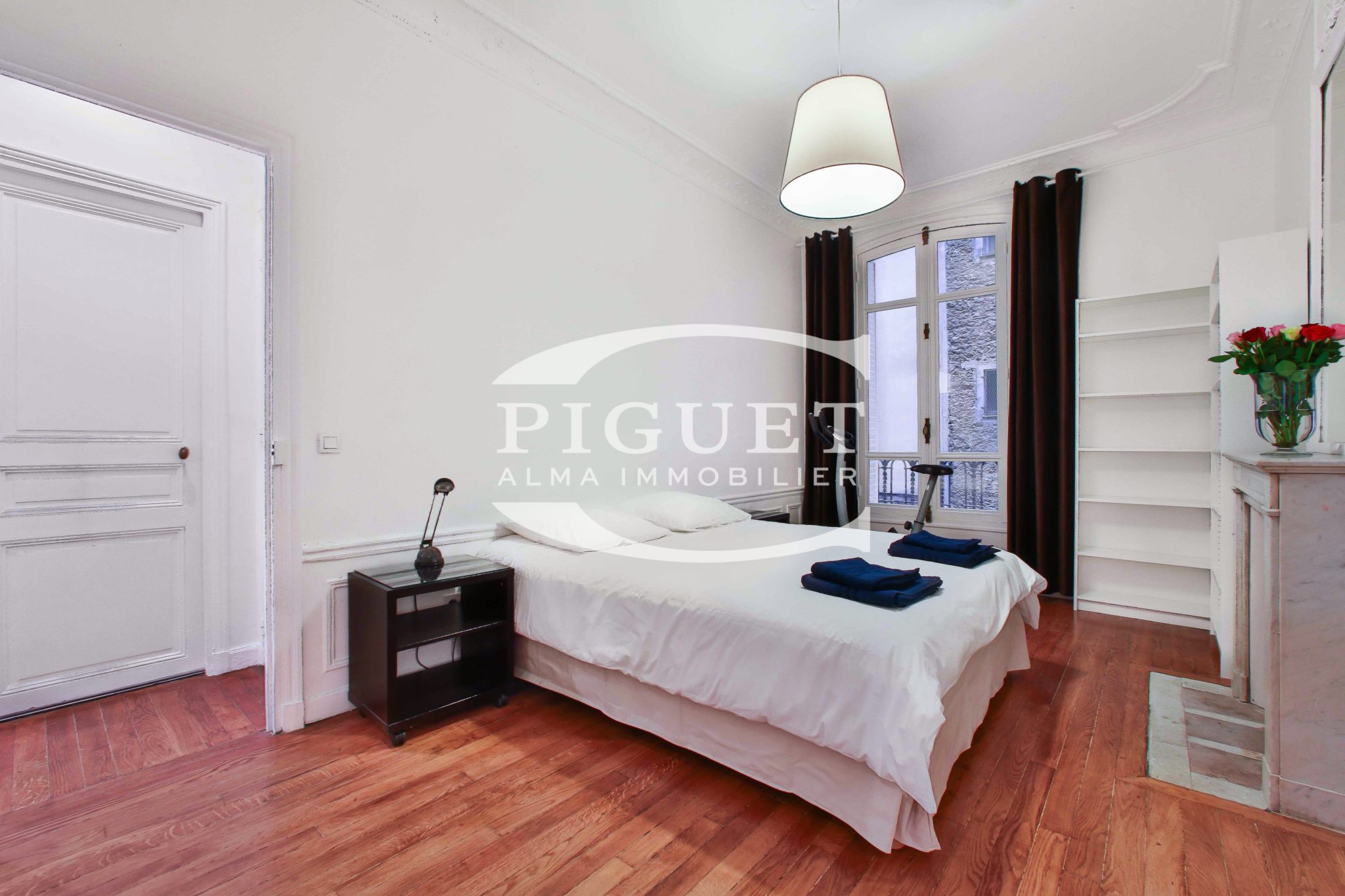 A proximité du Champ de Mars, au 1ER étage d’un très bel immeuble en pierre de taille du début du siècle dernier – un magnifique appartement entièrement refait de 5 pièces offrant de belles prestations, exposé Ouest, parquet, moulures, et cheminée, au calme le plus complet, plan fonctionnel.