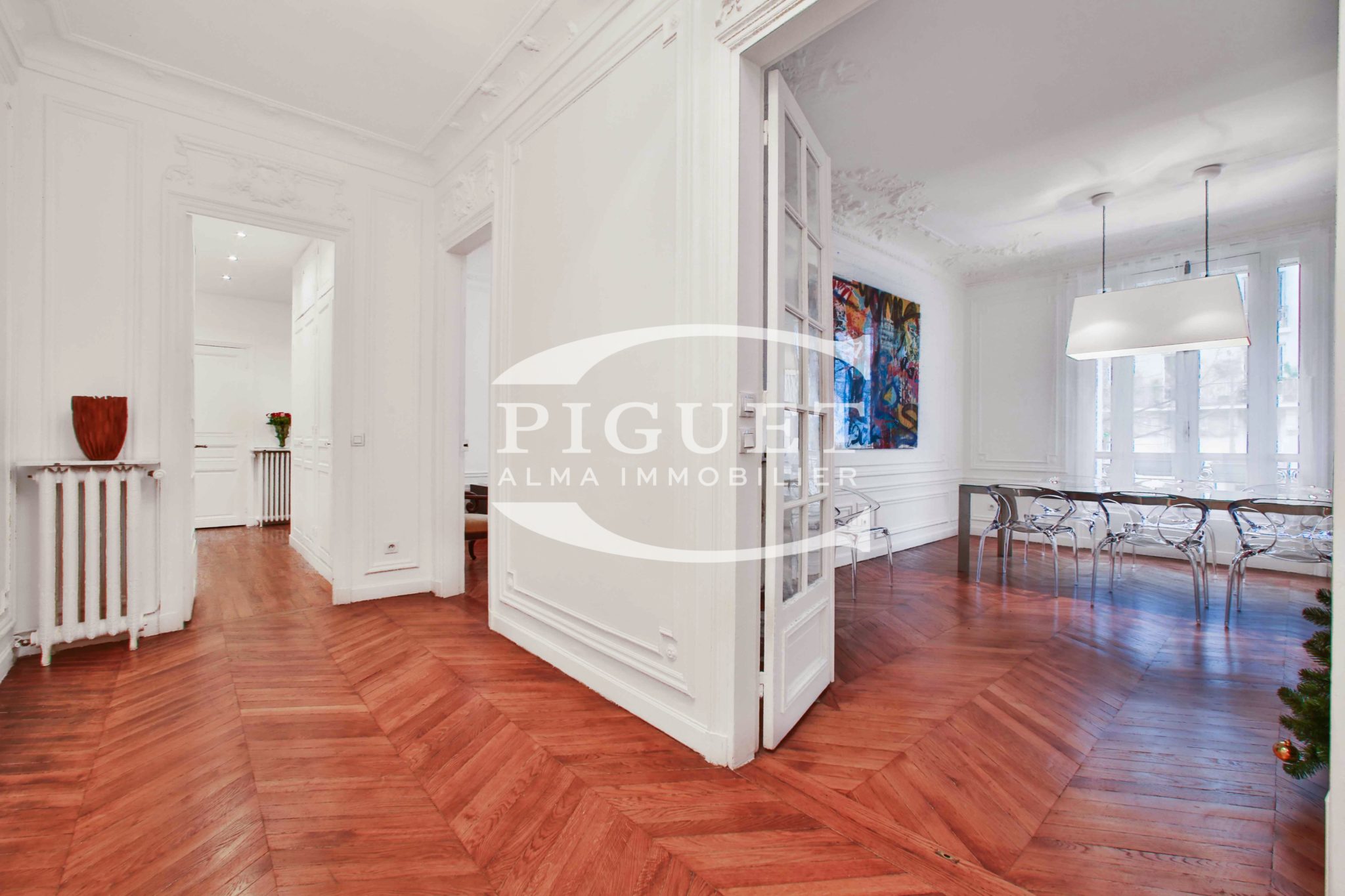 Close to the Champ de Mars, on the 1st floor of a beautiful early 20th-century stone building, a magnificent fully renovated 5-room apartment offering high-quality features, facing west, with wooden flooring, moldings, and a fireplace. Exceptionally quiet, with a functional layout.