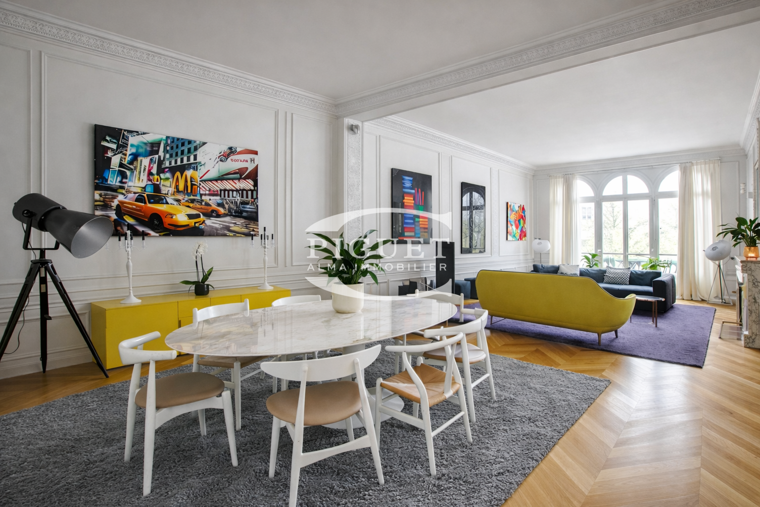 CATHERINE PIGUET vous propose, à l’étage noble d’un ancien hôtel particulier en pierre de taille édifié au début du siècle dernier, un magnifique appartement de 6 pièces offrant de superbes volumes et un équilibre harmonieux entre espaces de réception et vie familiale.