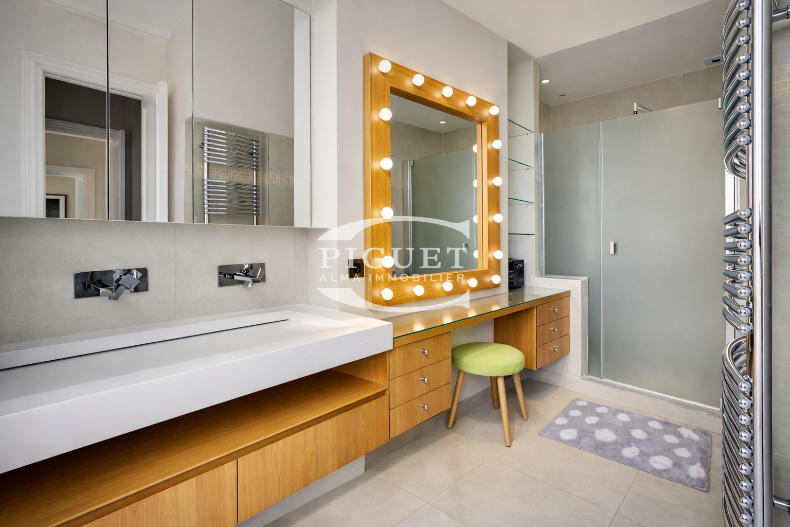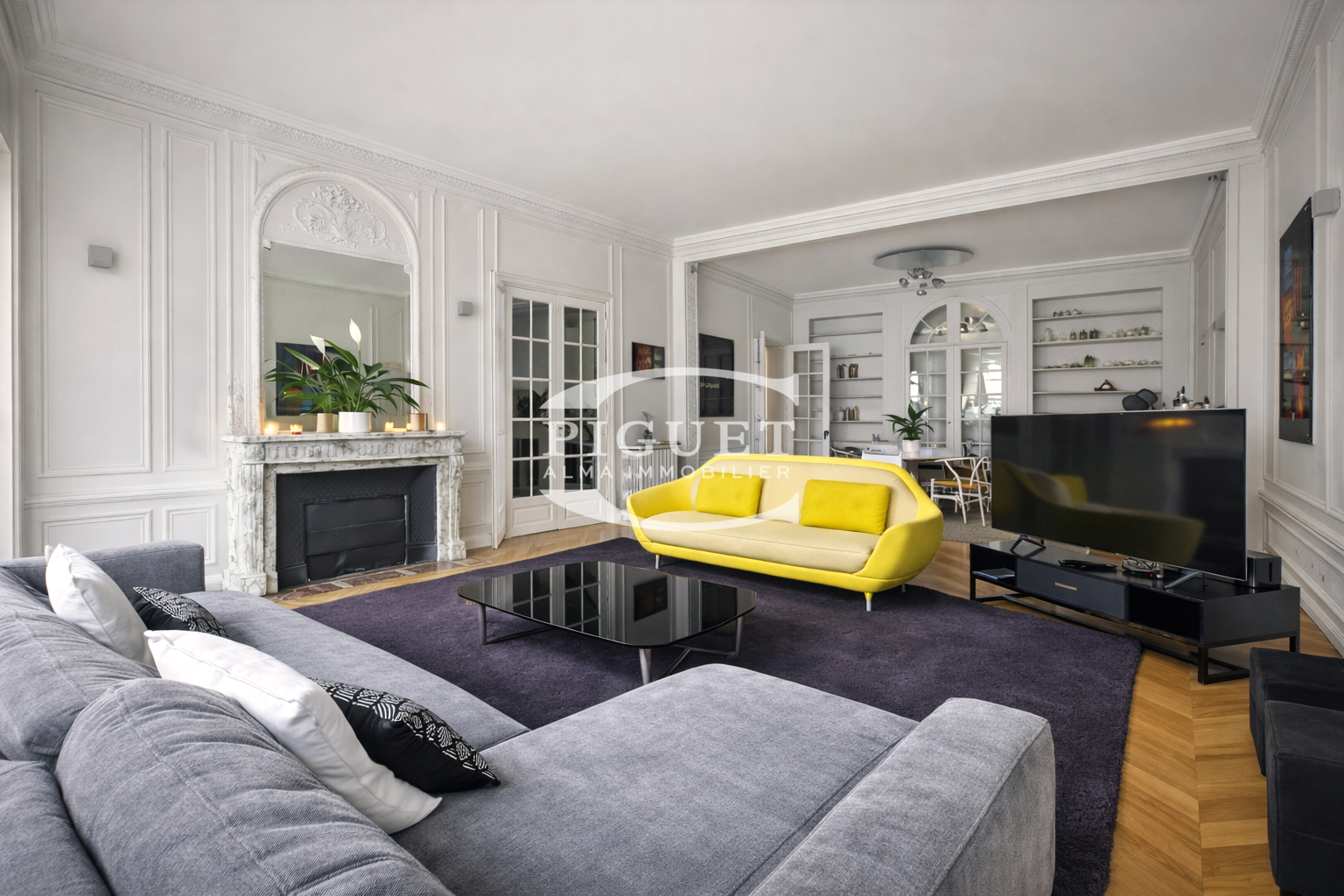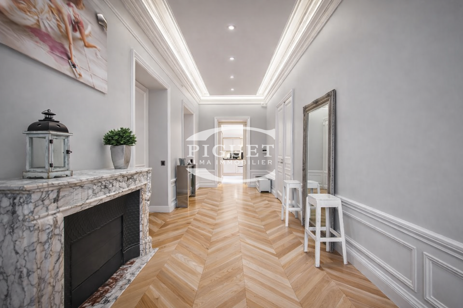 CATHERINE PIGUET PROPOS YOU Boulevard Flandrin On the second floor of a former mansion built in stone early in the last century, this beautiful 6-room apartment combines the necessary elements both for entertaining and family life, featuring 3m80 high ceilings, wooden parquet floors, moldings, and working fireplaces. It enjoys EAST/WEST through exposure with no vis-à-vis