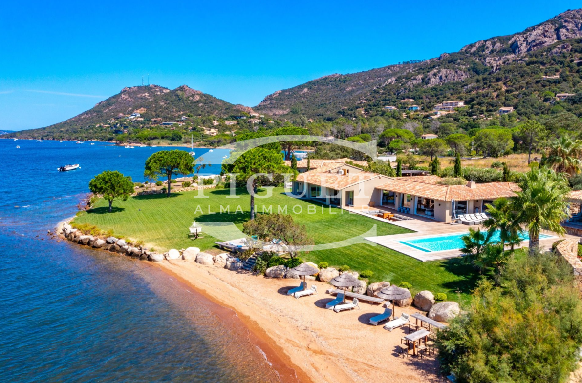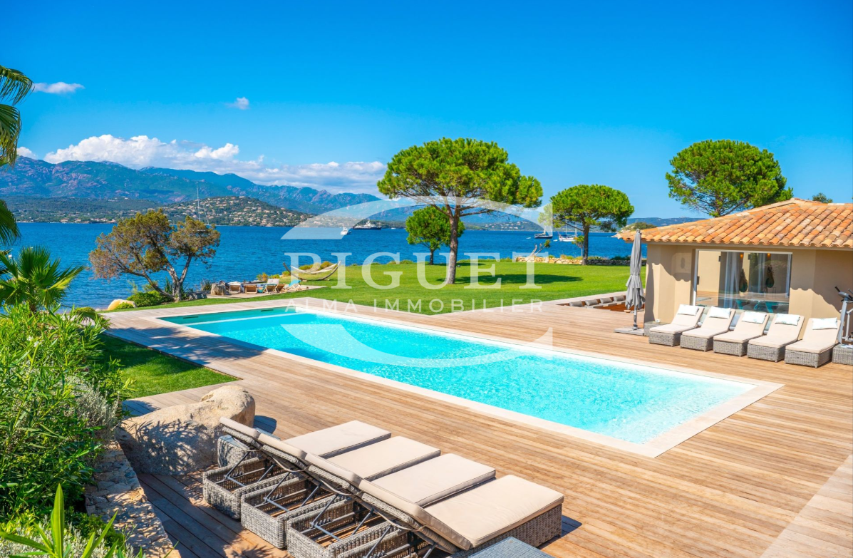 CATHERINE PIGUET vous invite à découvrir une villa confidentielle d’exception pieds dans l’eau en bordure du littoral avec sa plage privée bénéficiant de son propre ponton, idéal pour profiter de son bateau en directe et de tous les sports nautiques. Cette magnifique propriété de 9piéces est édifiée sur un parc paysagé exceptionnel de 4590 M², elle se développe de plain pied sur une surface de 350 M², la vue est exclusive, un véritable panorama(la mer à l’infini, les montagnes, la citadelle de Porto-Vecchio).