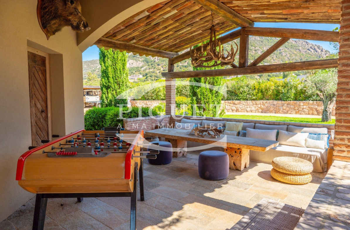 This magnificent estate is nestled within an exceptional landscaped park of 4,590 m², and extends over 350 m² on a single level. The view is truly unique — a sweeping panorama of the endless sea, the mountains, and the citadel of Porto-Vecchio.