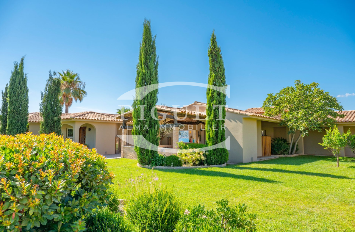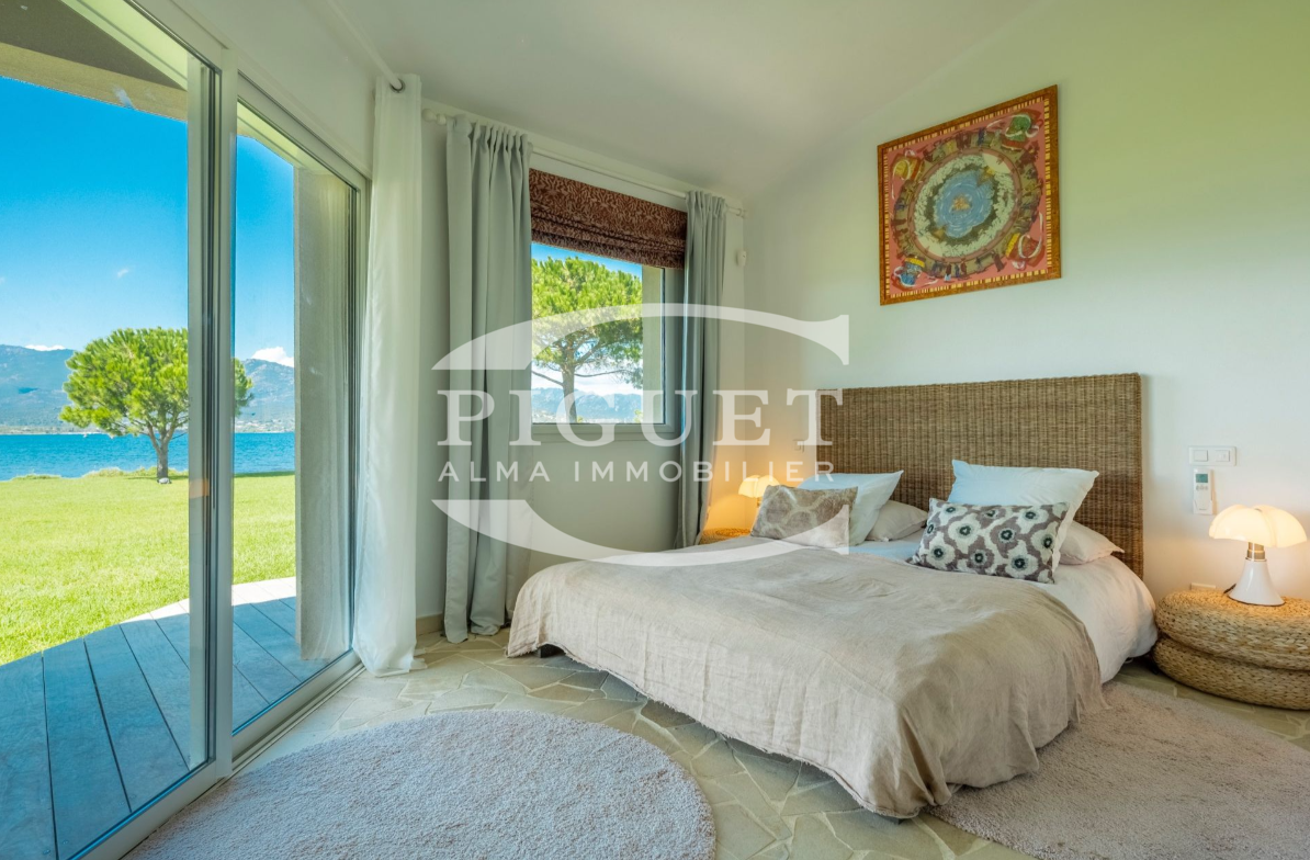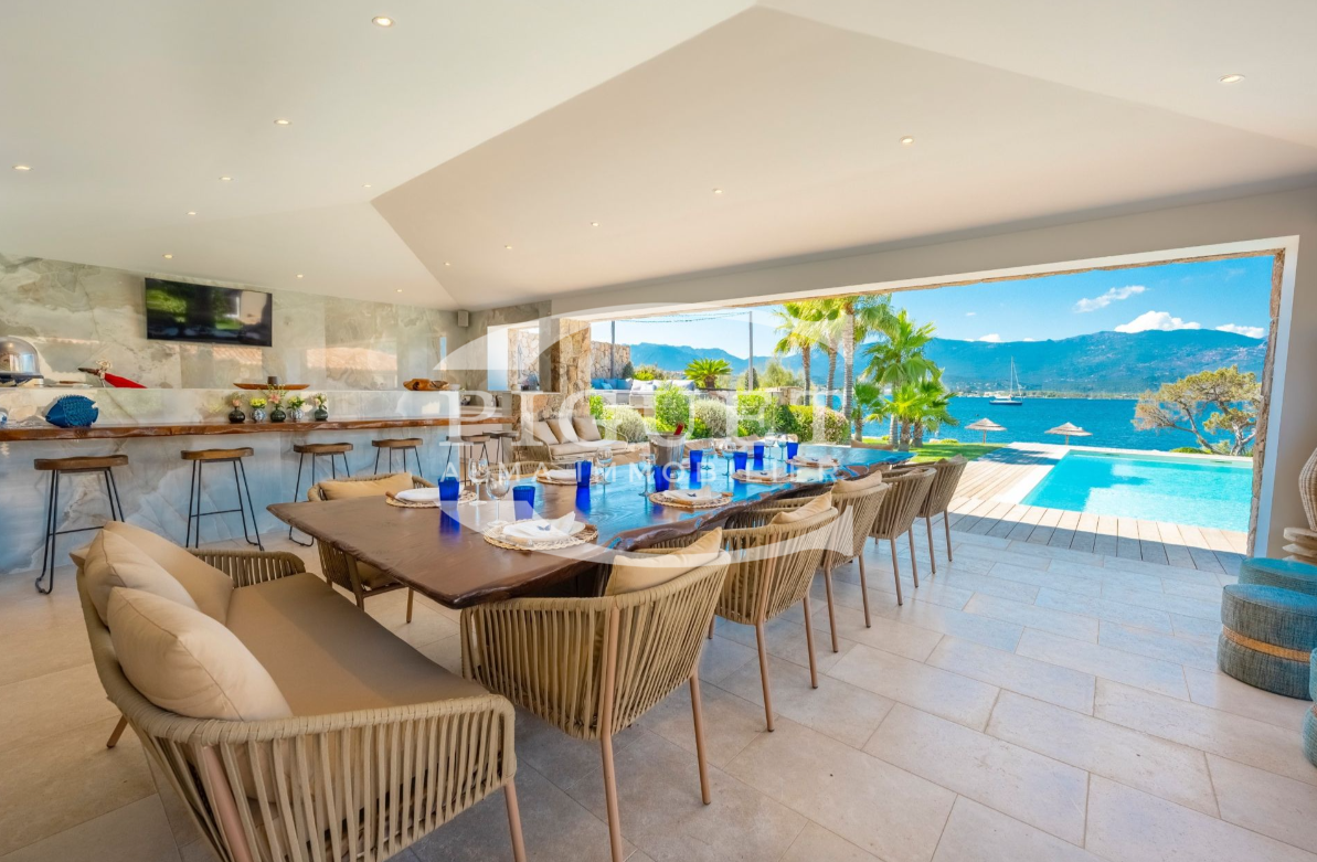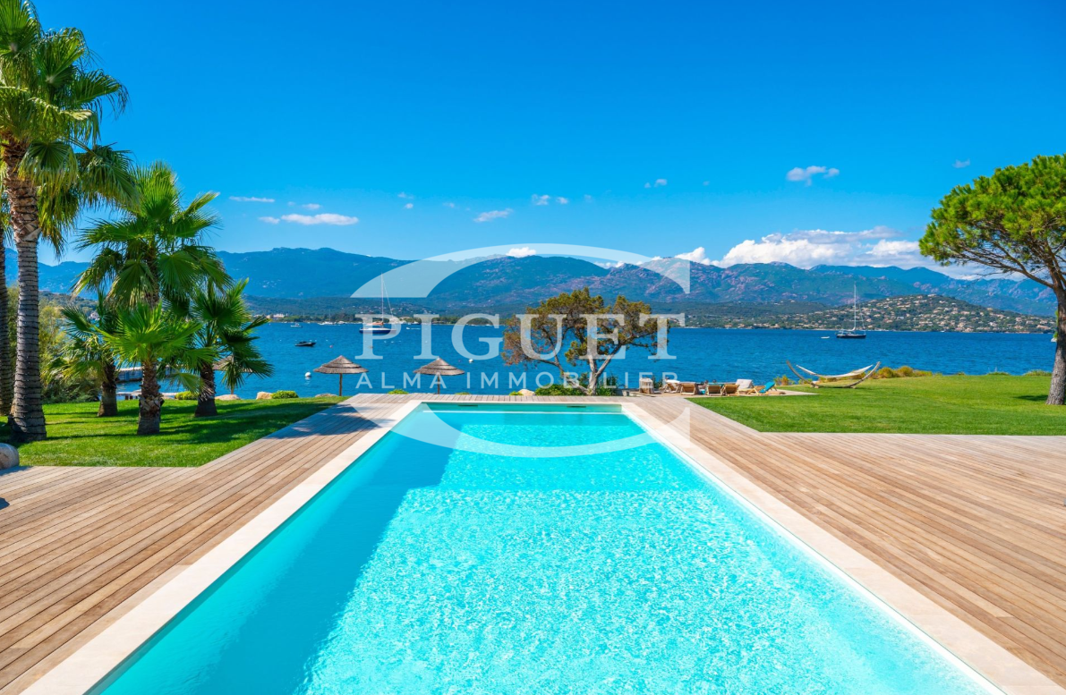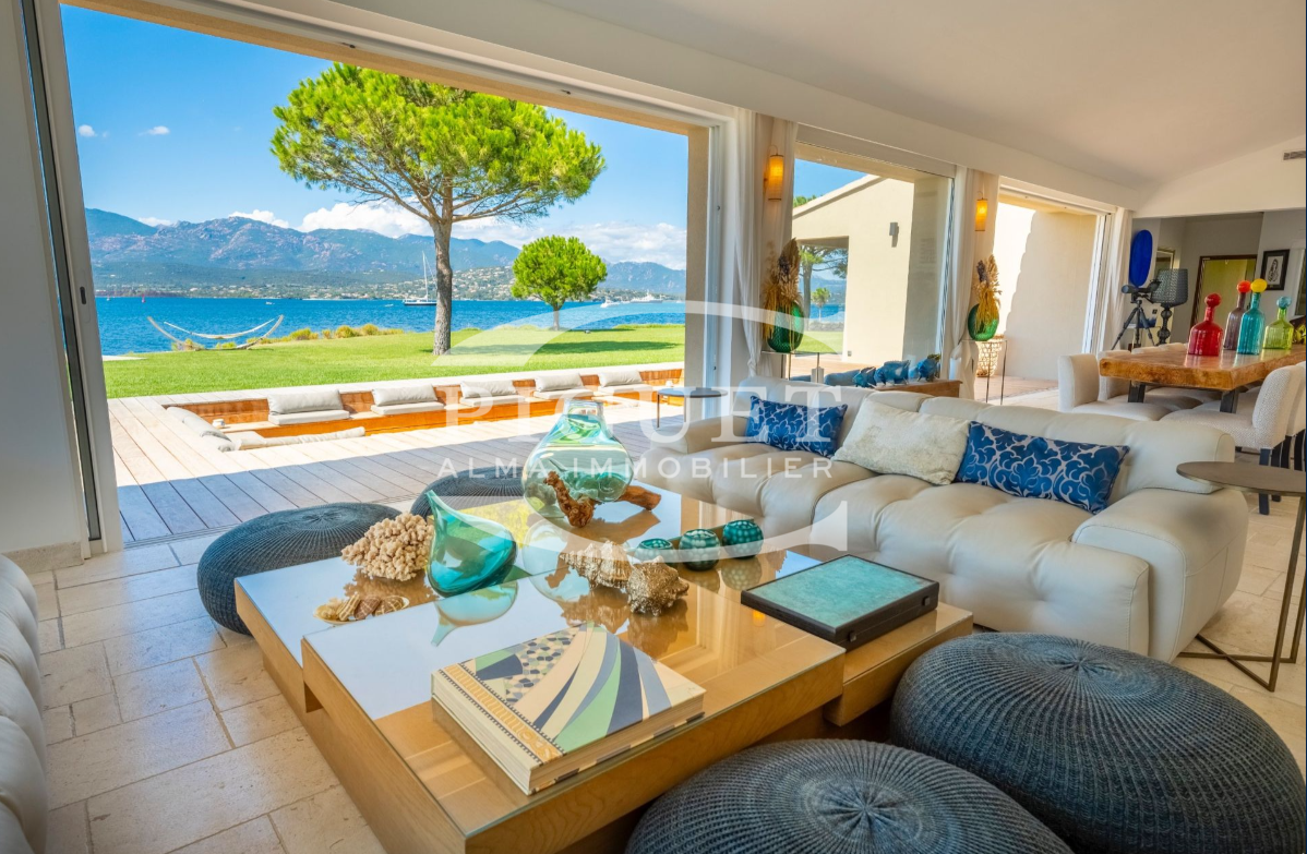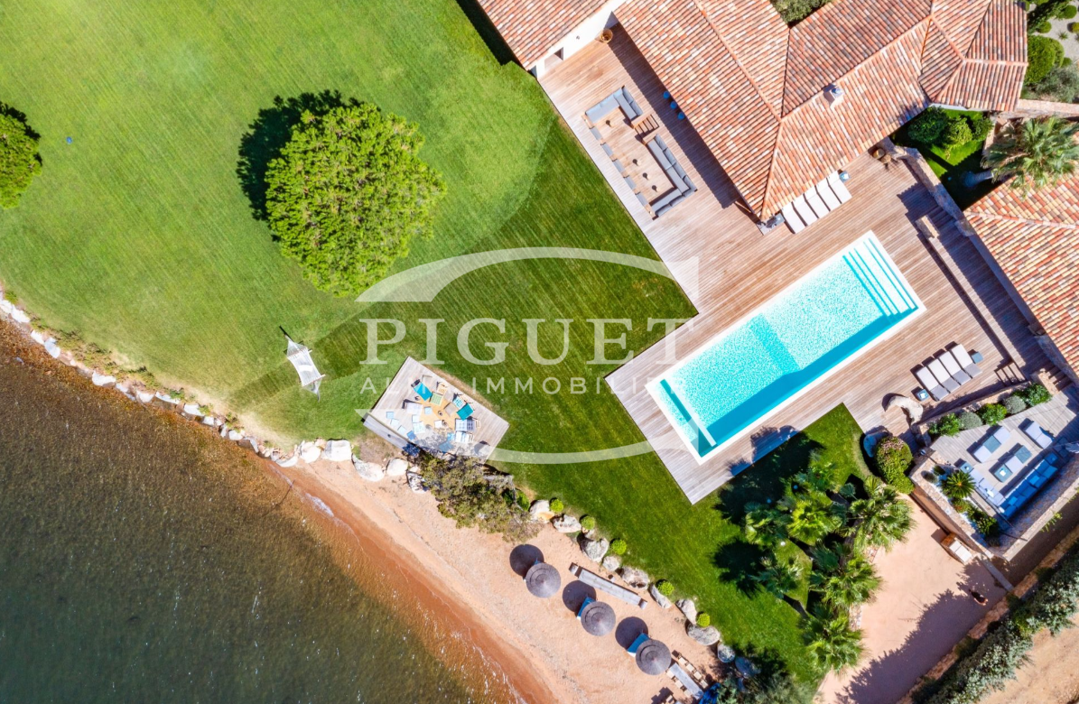 CATHERINE PIGUET invites you to discover an exceptional and discreet waterfront villa, set directly on the shoreline with its own private beach and private jetty — ideal for enjoying your boat and all water sports directly from the property.