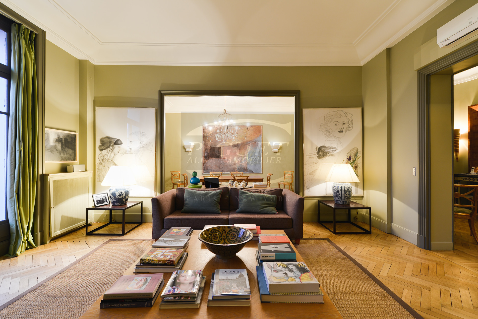 CATHERINE PIGUET offers you on the fourth floor of a beautiful building of the 30s overlooking Place Vauban, a magnificent apartment fully furnished in Christian LIAIGRE, restored with refinement, The apartment enjoys maximum sunshine, beautiful height under ceiling, air-conditioned apartment, parquet throughout the apartment. +33.1.40.70.95.10