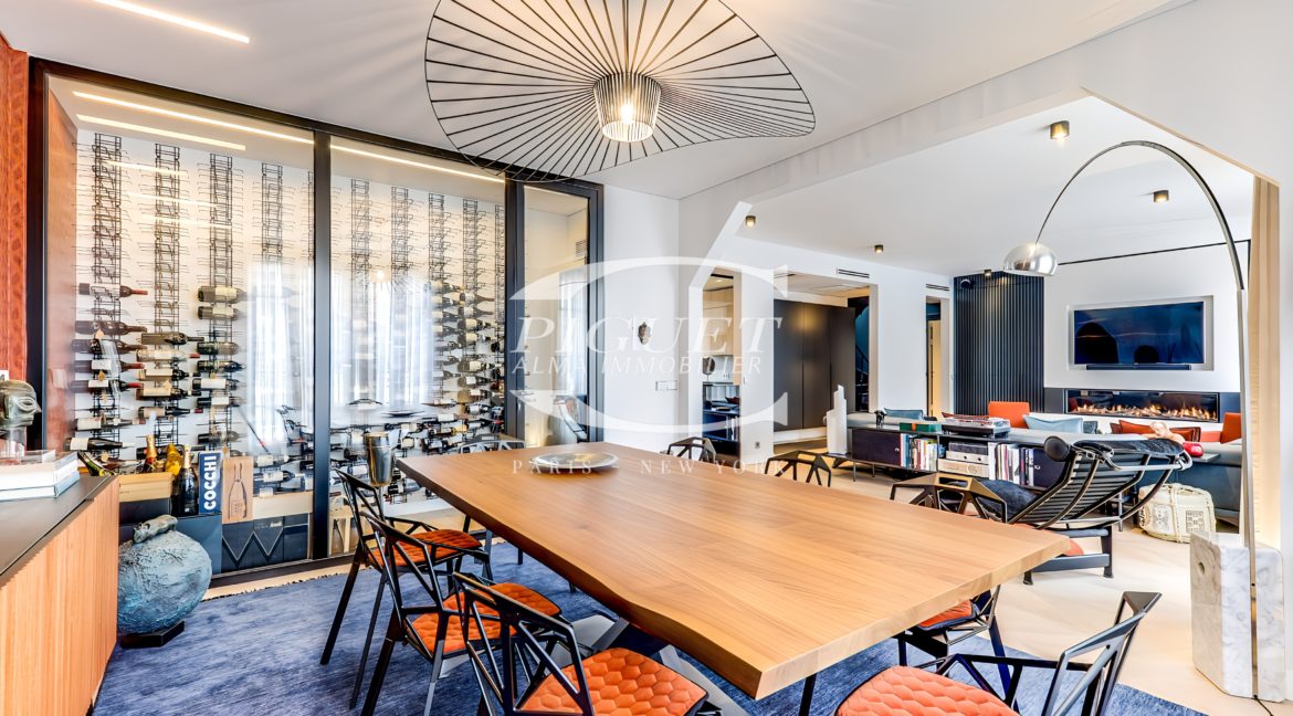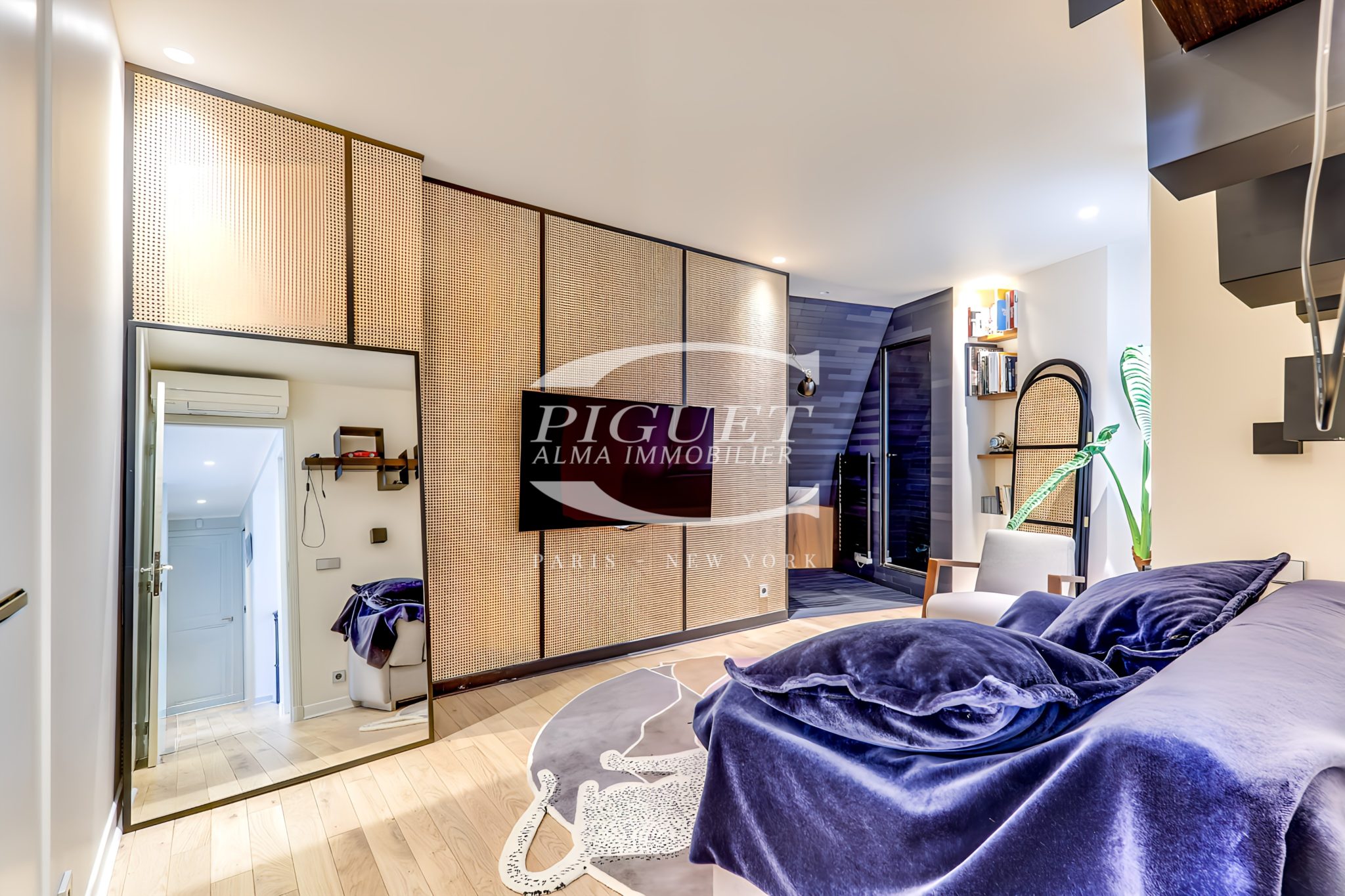 JARDIN DU RANELAGH/LA MUETTE Catherine PIGUET vous propose en exclusivité dans un immeuble en pierre de taille de grand standing un élégant duplex situé aux 6? et 7? étages, où se mêlent avec raffinement modernité et prestations haut de gamme. Dès l’entrée, vous découvrez une ambiance sophistiquée portée par un design résolument contemporain. L’espace de vie principal, conçu en open space, offre une parfaite fluidité entre le salon, la salle à manger et la cuisine. De larges baies vitrées baignent l’ensemble de lumière naturelle, créant une atmosphère chaleureuse qui sublime chaque détail.La cuisine, entièrement rénovée avec des matériaux de grande qualité, allie esthétisme et fonctionnalité. Équipée d’appareils haut de gamme et de rangements élégants, elle s’organise autour d’un vaste îlot central propice aux moments de convivialité. Les éclairages intégrés et les finitions soignées renforcent le sentiment de confort et d’élégance dans chaque pièce. Entièrement rénové, ce bien d’exception incarne parfaitement l’art de vivre contemporain, offrant un cadre paisible où design et bien-être s’harmonisent avec finesse. EXCLUSIVITÉ CATHERINE PIGUET ALMA IMMOBILIER