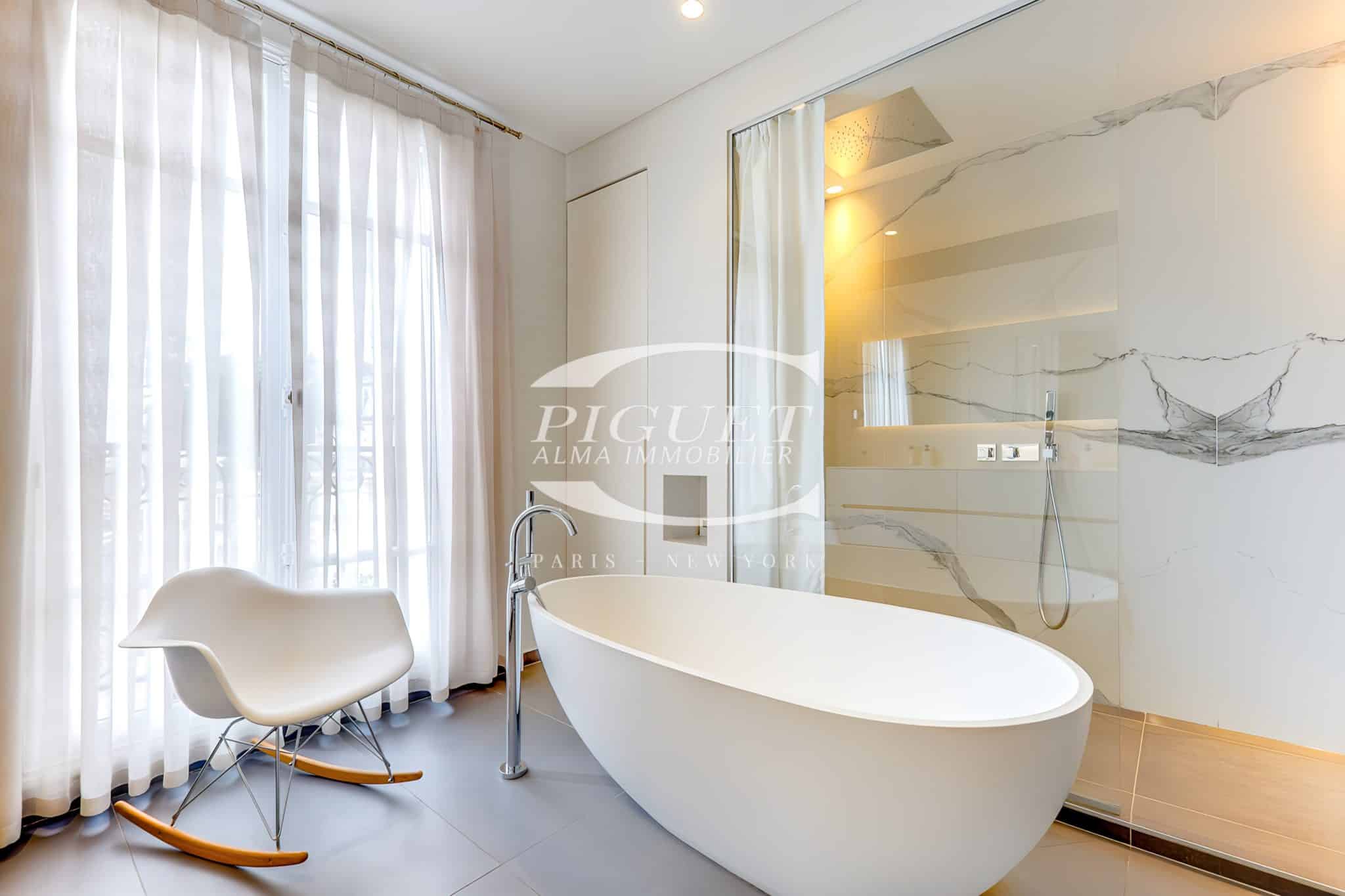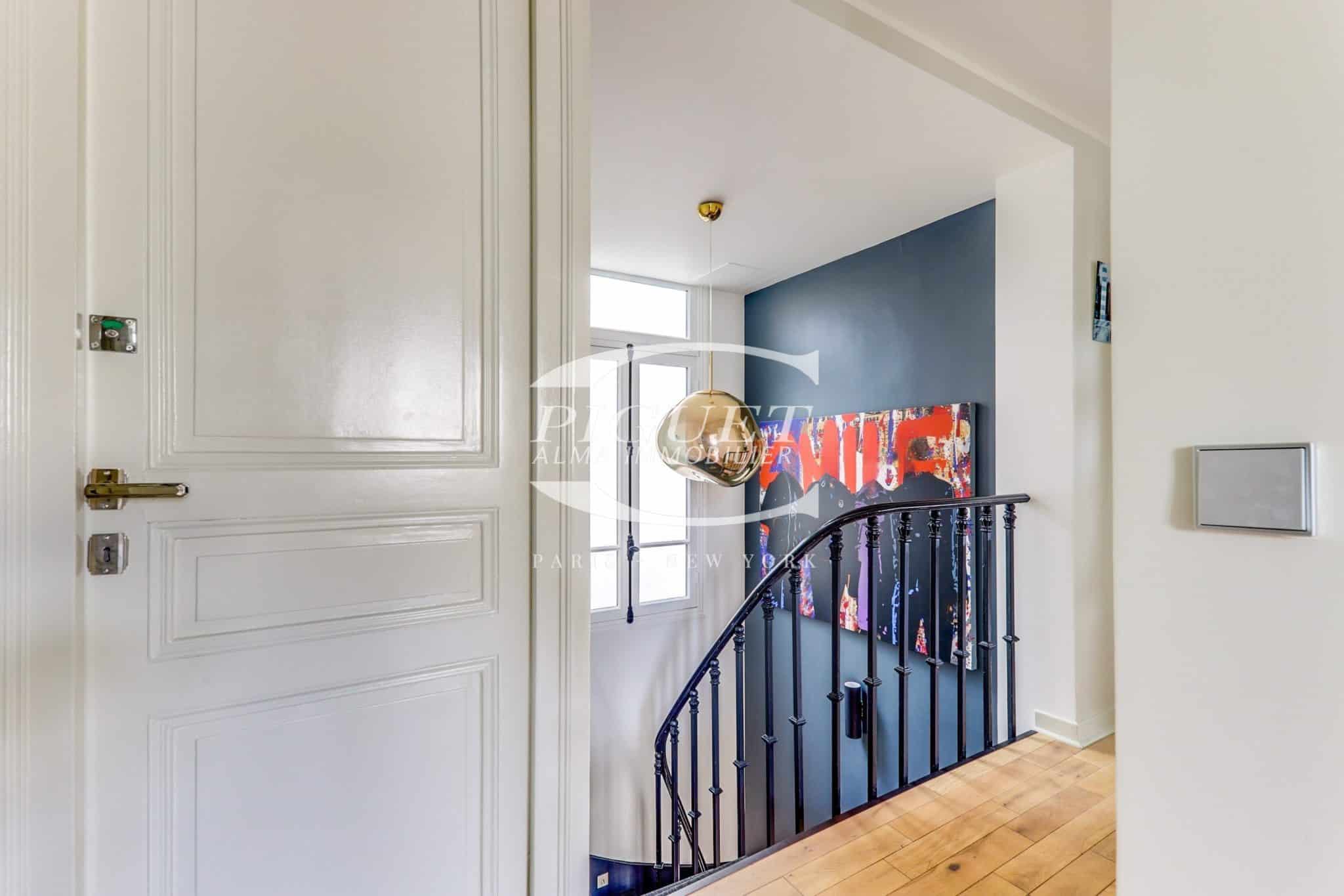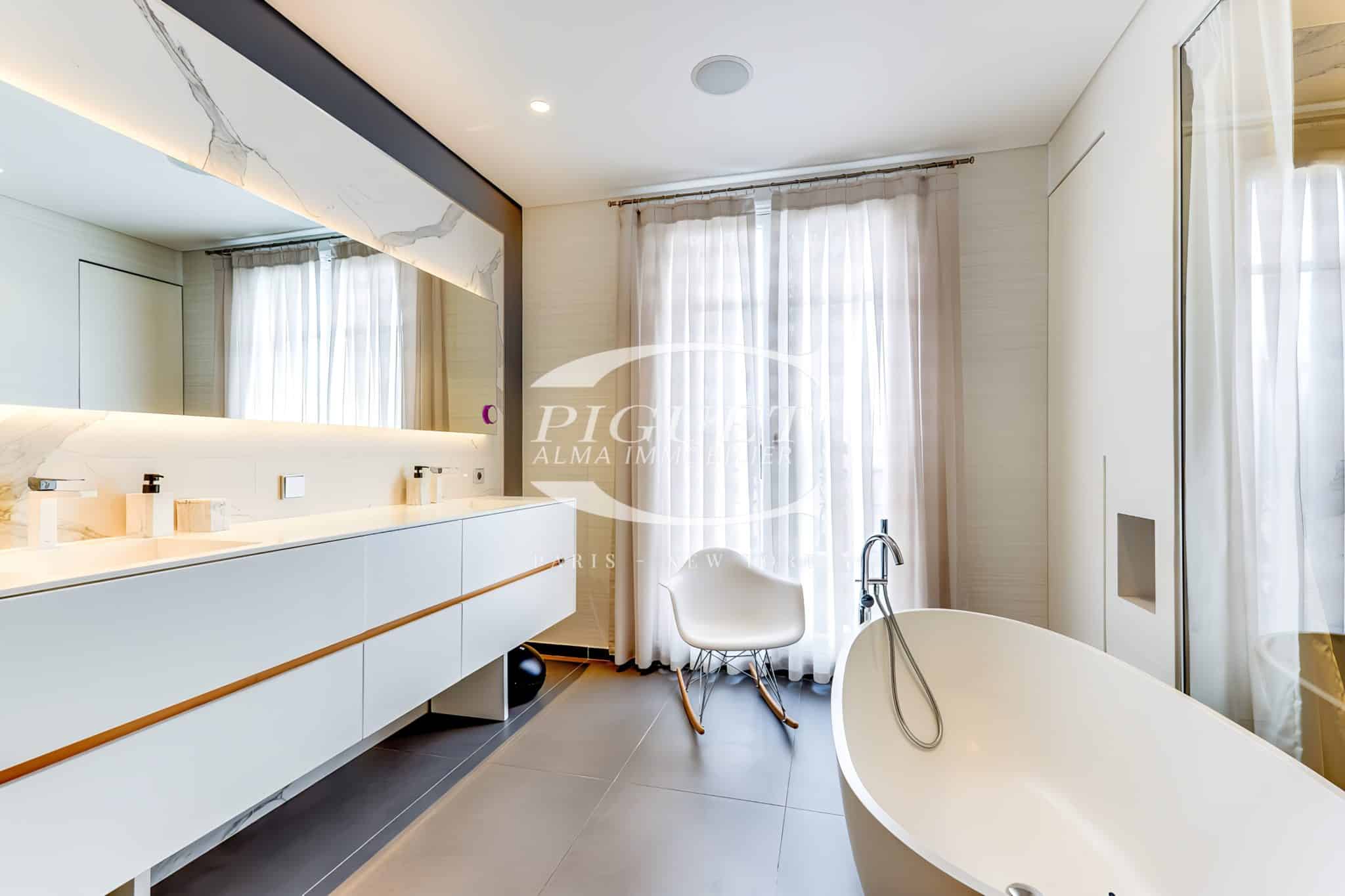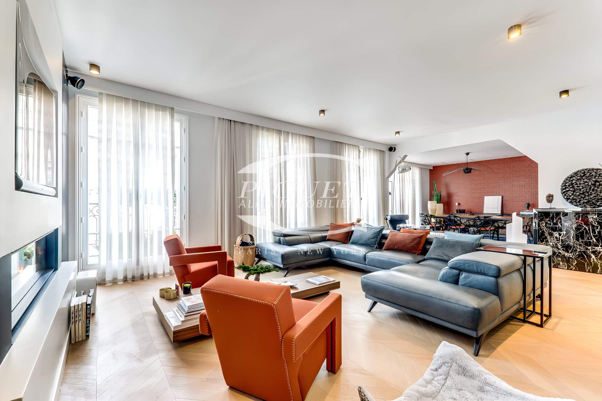 RANELAGH GARDEN/ THE SILENT-VIEW DEGAGEE Catherine PIGUET exclusively presents this elegant duplex apartment, located on the 6th and 7th floors of a prestigious freestone building, where modernity and high-end features blend with refined elegance. From the moment you step inside, you are welcomed by a sophisticated atmosphere enhanced by a distinctly contemporary design. The main living area, designed as an open-plan space, offers seamless flow between the living room, dining area, and kitchen. Large bay windows flood the space with natural light, creating a warm ambiance that highlights every detail. The kitchen, fully renovated with high-quality materials, combines aesthetics and functionality. Equipped with top-of-the-line appliances and elegant cabinetry, it is centered around a spacious island that invites convivial gatherings. Integrated lighting and meticulous finishes enhance the sense of comfort and elegance throughout each room. Fully renovated, this exceptional property perfectly embodies contemporary living, offering a peaceful setting where design and well-being harmonize beautifully. EXCLUSIVE LISTING CATHERINE PIGUET ALMA IMMOBILIER