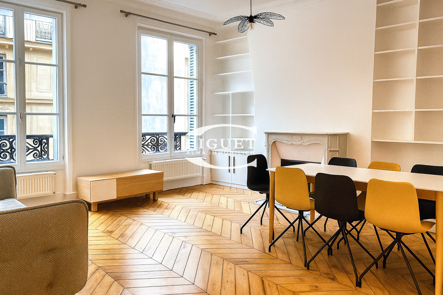 Catherine PIGUET offers you a 4-room apartment, combining comfort and character. The double reception, bright and cozy, offers an ideal setting for relaxing or entertaining, a quiet and intimate bedroom and an independent office. Everything is enhanced by a pretty Hungarian point parquet floor, which adds an elegant touch to this apartment with undeniable charm.