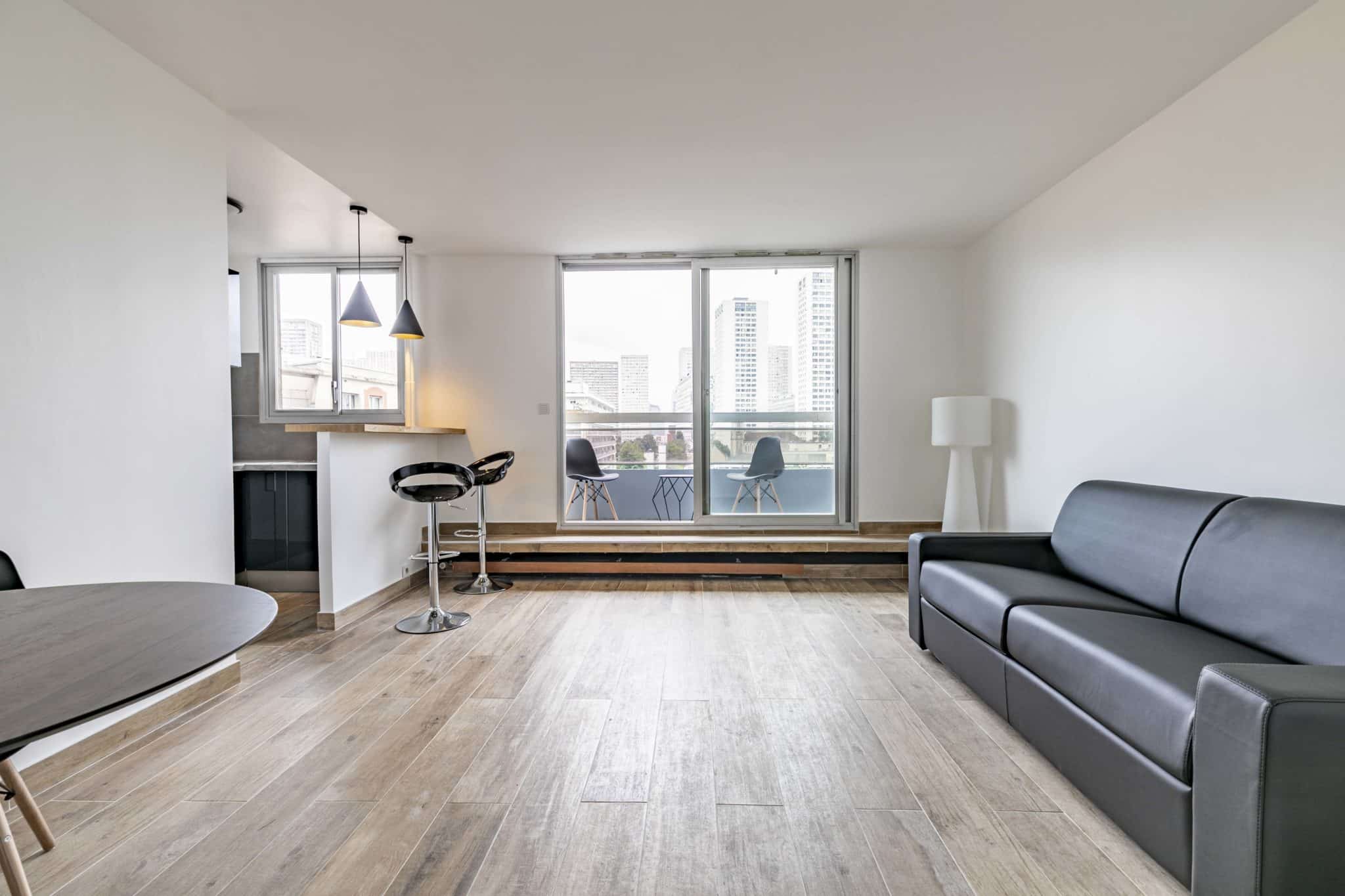 On the 7th floor of a contemporary luxury building from the 80’s, no vis-à-vis, a beautiful bright brand new studio, hardwood parquet floor, fully equipped kitchen, close to everything: orly airport access in 10 minutes, shops, the “ITALIE 2″center, maison blanche, twice weekly market, university tolbiac. Possible to rent empty or furnished heating and hot water included in charges.