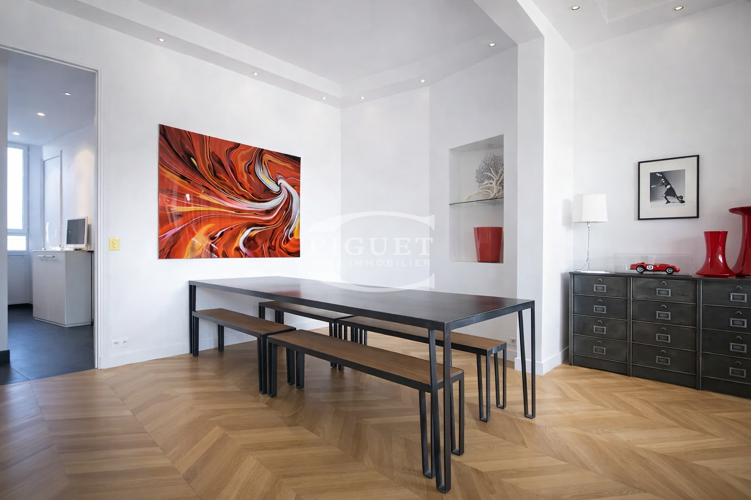 Catherine PIGUET presents, in the immediate vicinity of Parc Monceau, an elegant apartment located on the 5th floor of a prestigious building. This property stands out for its generous volumes, remarkable natural light, and its spacious reception area, enhanced by herringbone parquet flooring and a fluid layout, perfectly suited for both entertaining and everyday living. The apartment benefits from air conditioning.