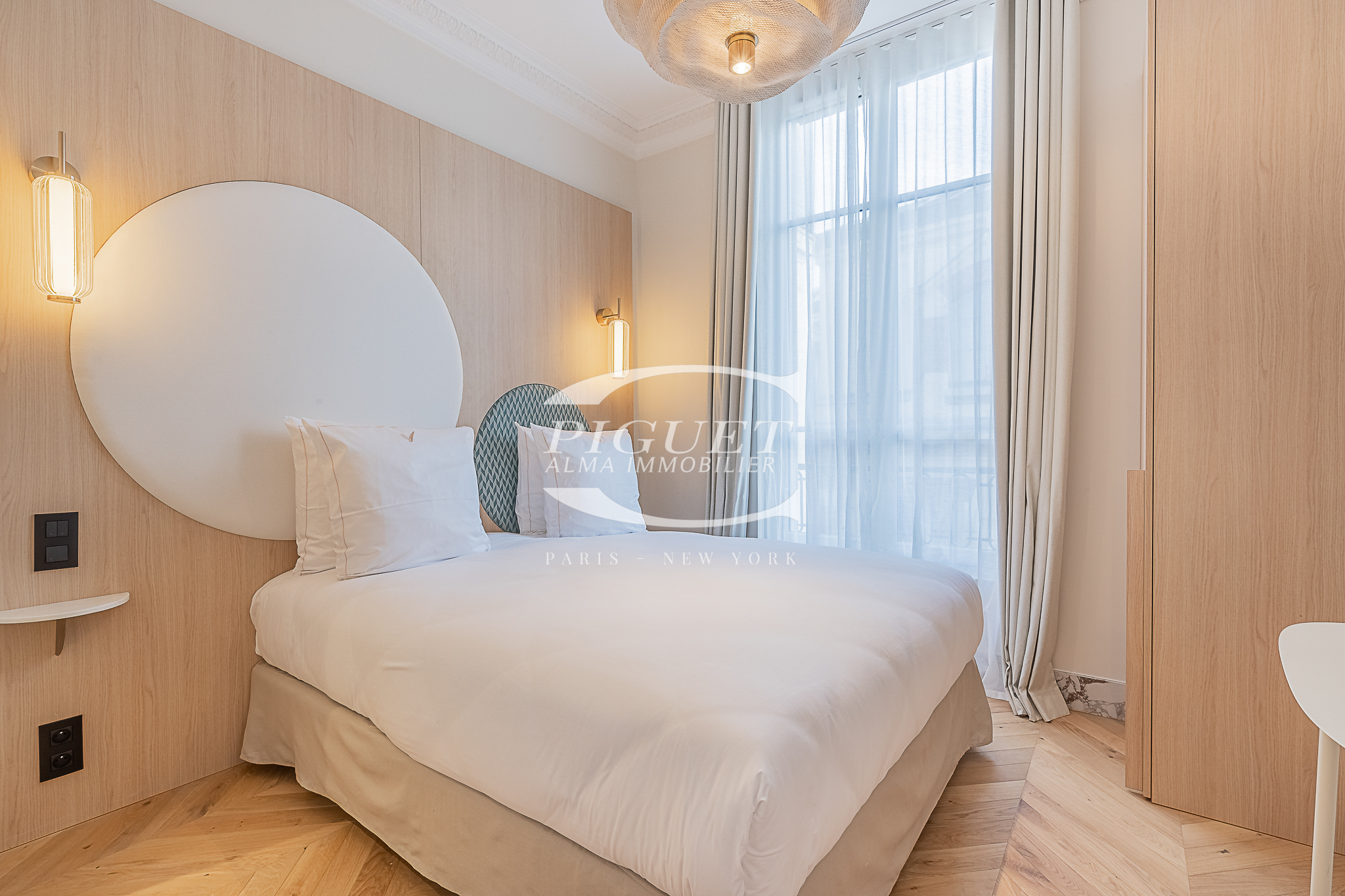 CATHERINE PIGUET offers on the 4th floor of a high standing stone building with very refined common areas, with a concierge service, a pied à terre of 2 rooms apartment bathed in light that has been completely restored in high quality materials. Parquet floor, air conditioning throughout the apartment, very high standard prestation.