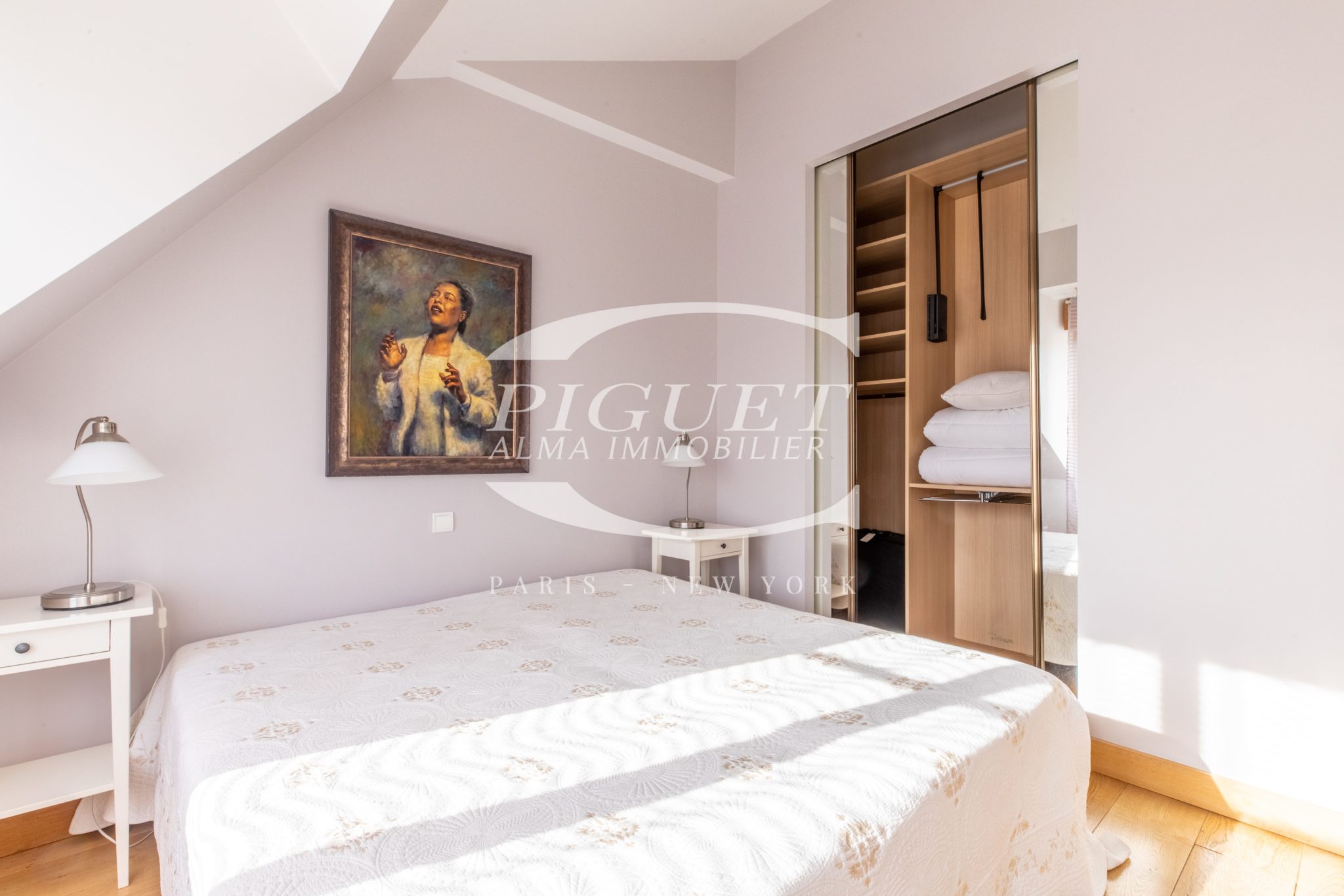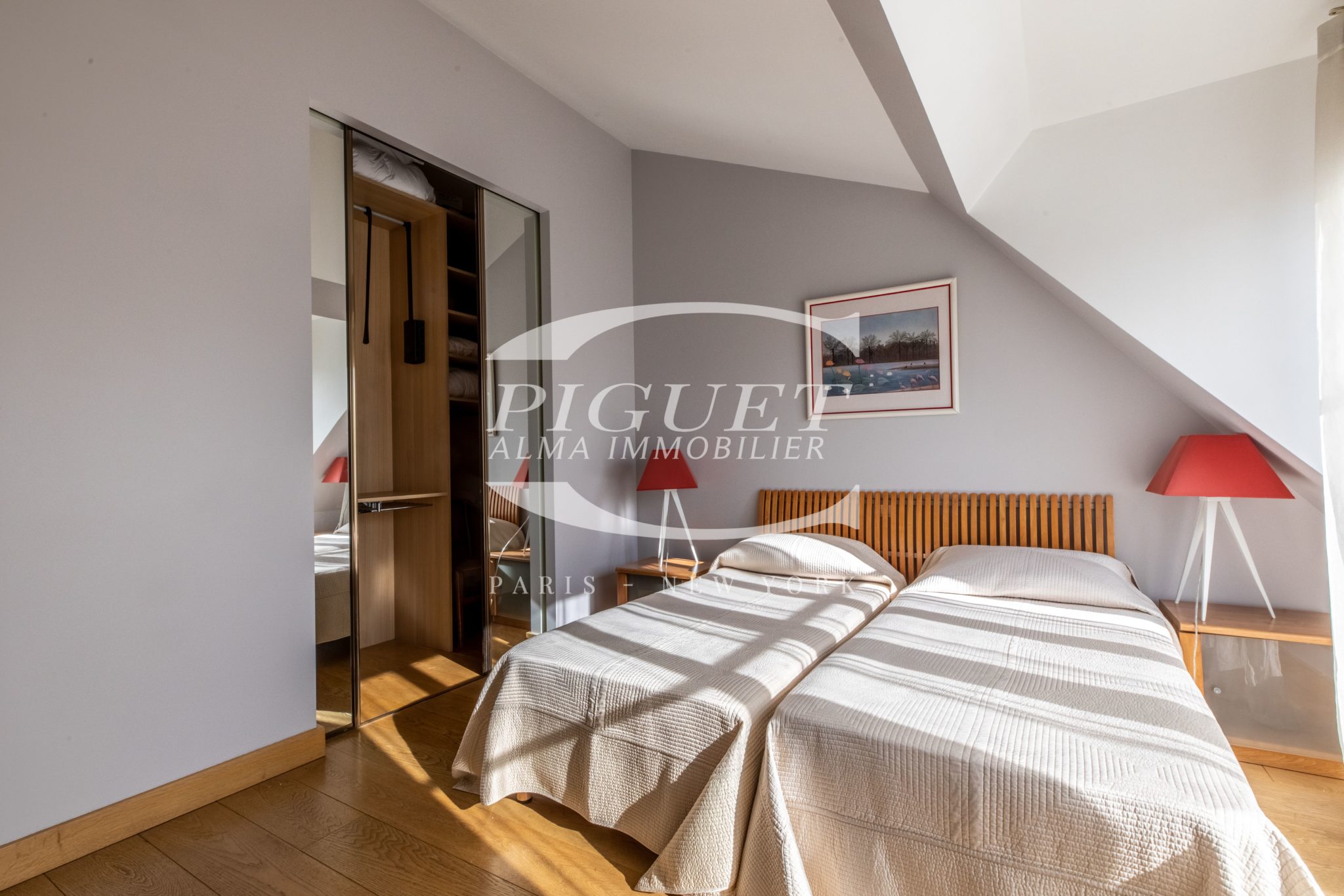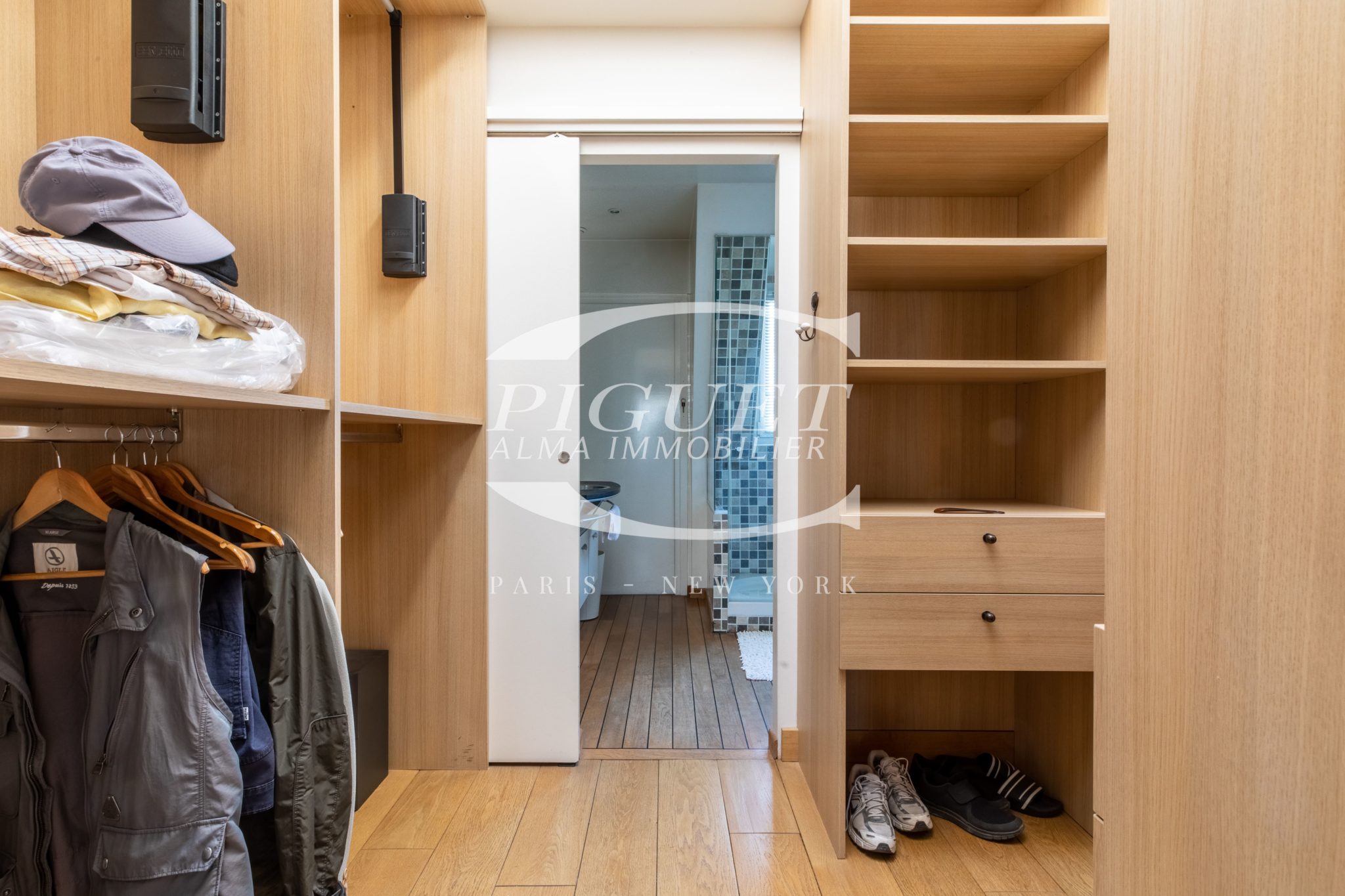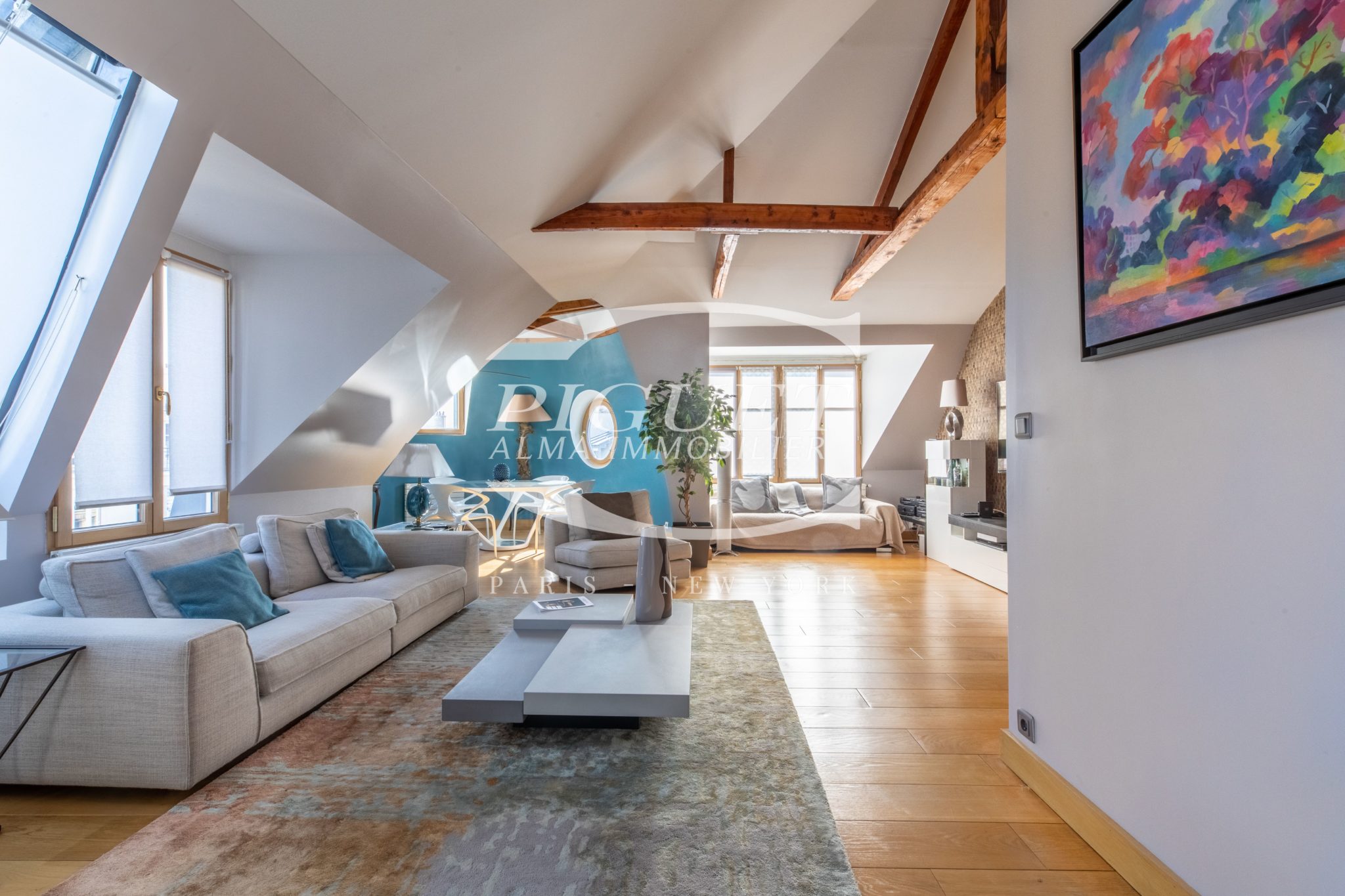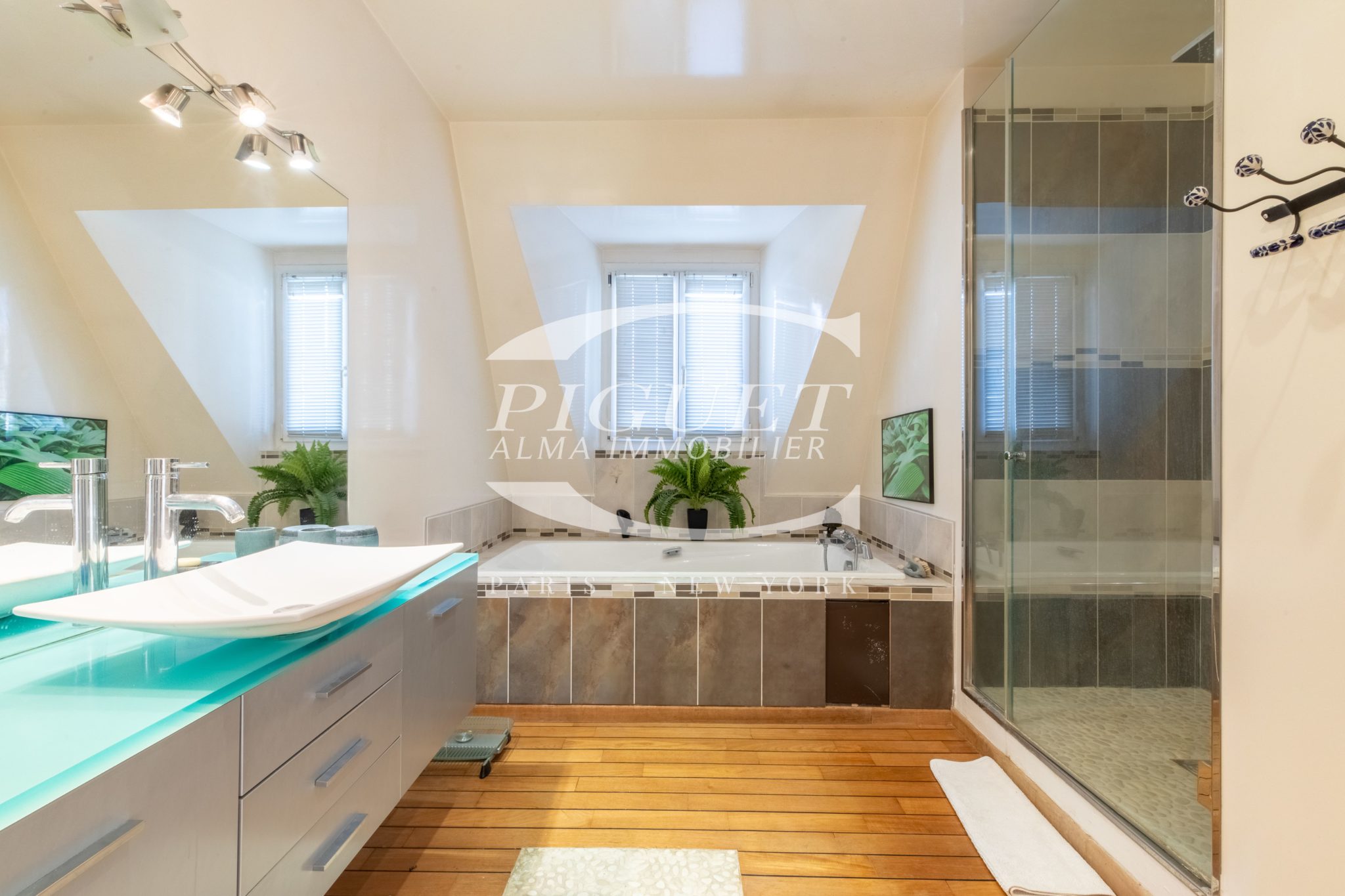 CATHERINE PIGUET vous invite à venir découvrir au 5éme et dernier étage d’un immeuble haussmannien en pierre de taille ,construit en 1910,un magnifique appartement de 5 pièces traité en loft, un salon en rotonde bénéficiant de 2 petites terrasses de plain pied sans vis-à-vis, avec une vue Tour Eiffel, Seine, cet appartement est traversant exposé EST/OUEST, très lumineux et ensoleillé., parquet, poutres apparentes, cheminées. 01.40.70.95.10