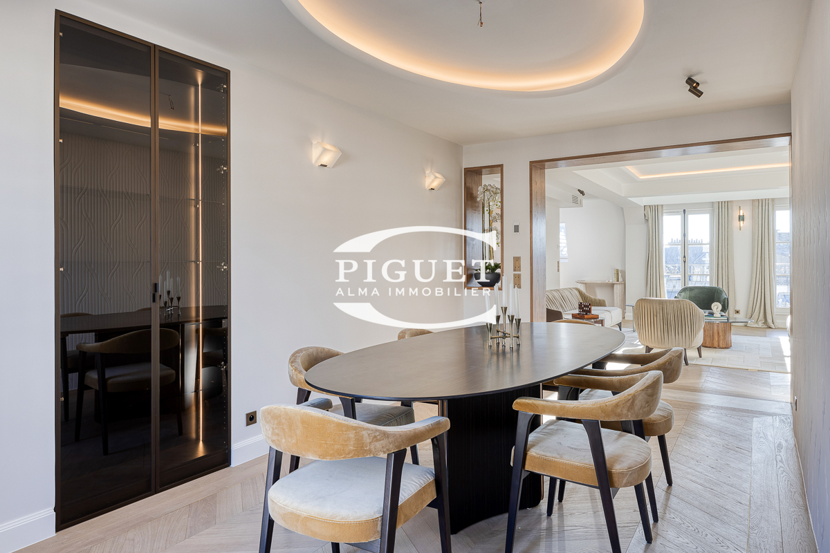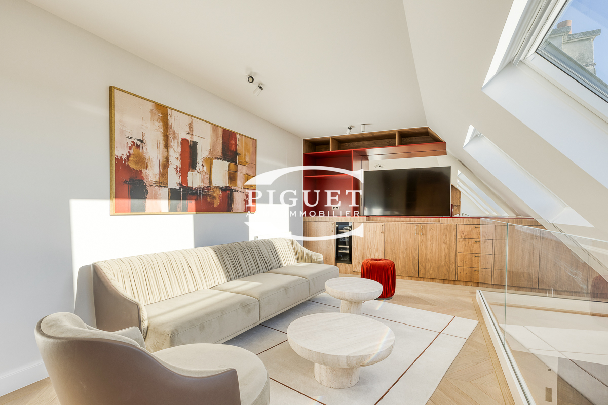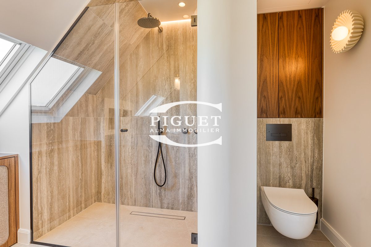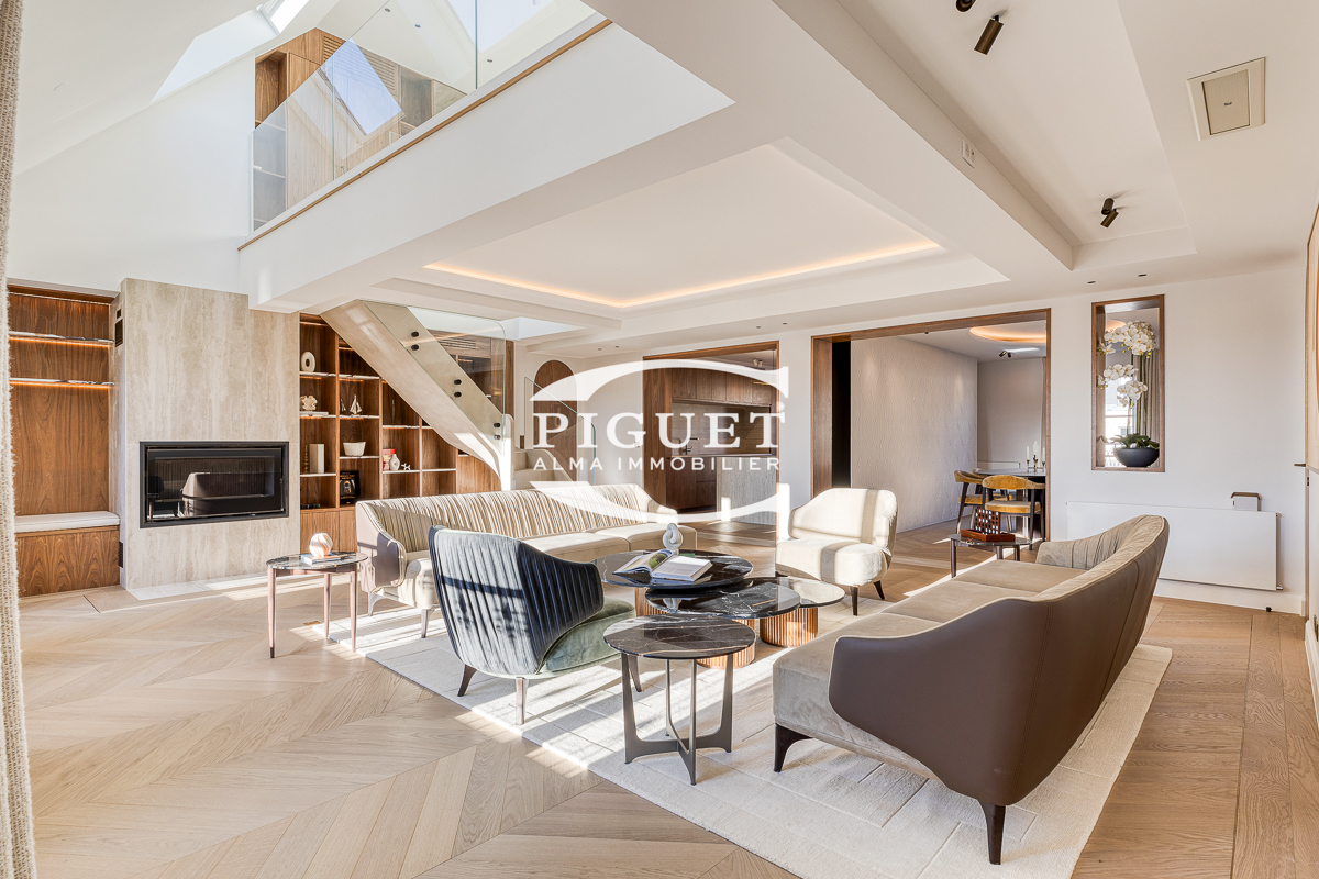 CATHERINE PIGUET, invites you to discover this beautiful apartment crossing 8 rooms completely restored in exceptional materials, it has a mezzanine forming an office space illuminated by a large glass roof that bathes the whole apartment in bright light, the spirit is very contemporary, combining parquet, precious wood, glass, metal making this place a true architectural masterpiece.