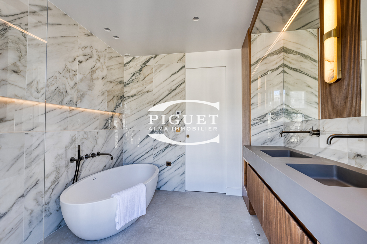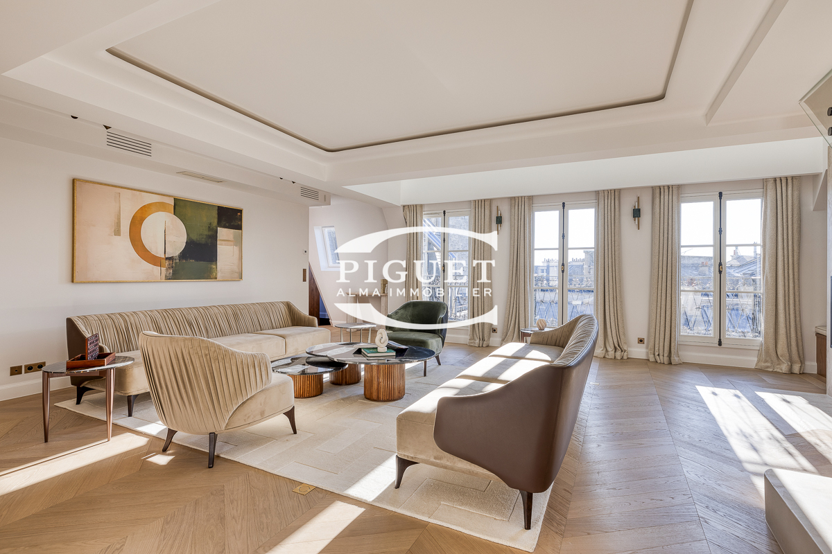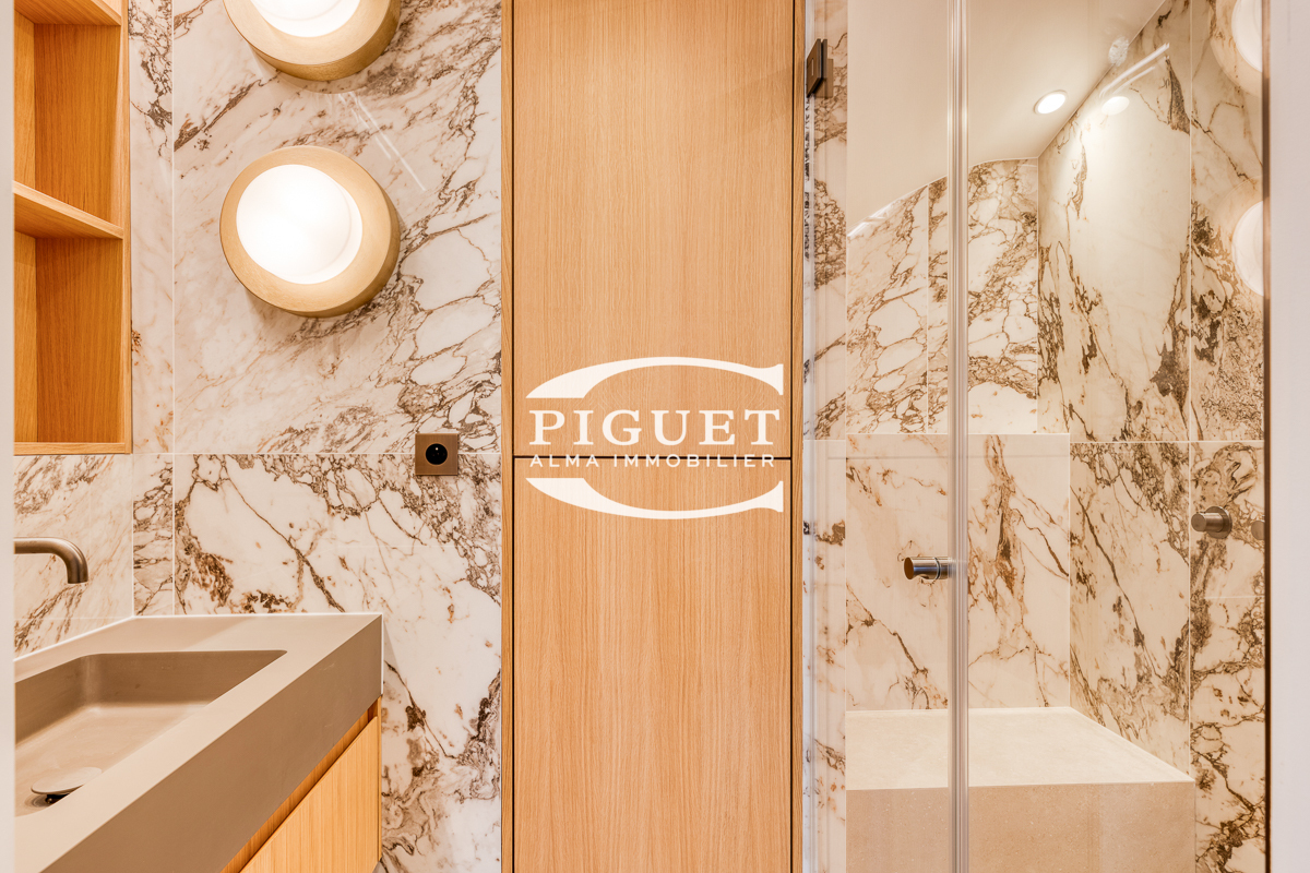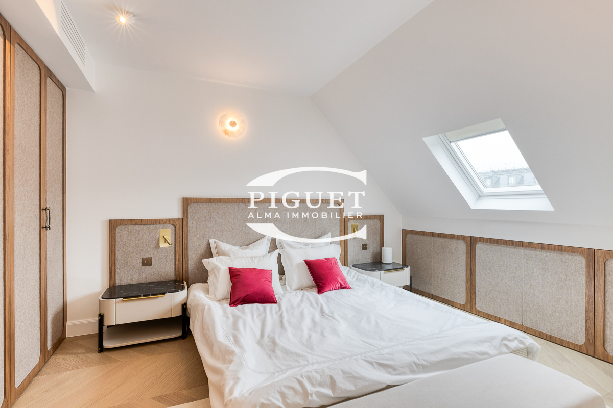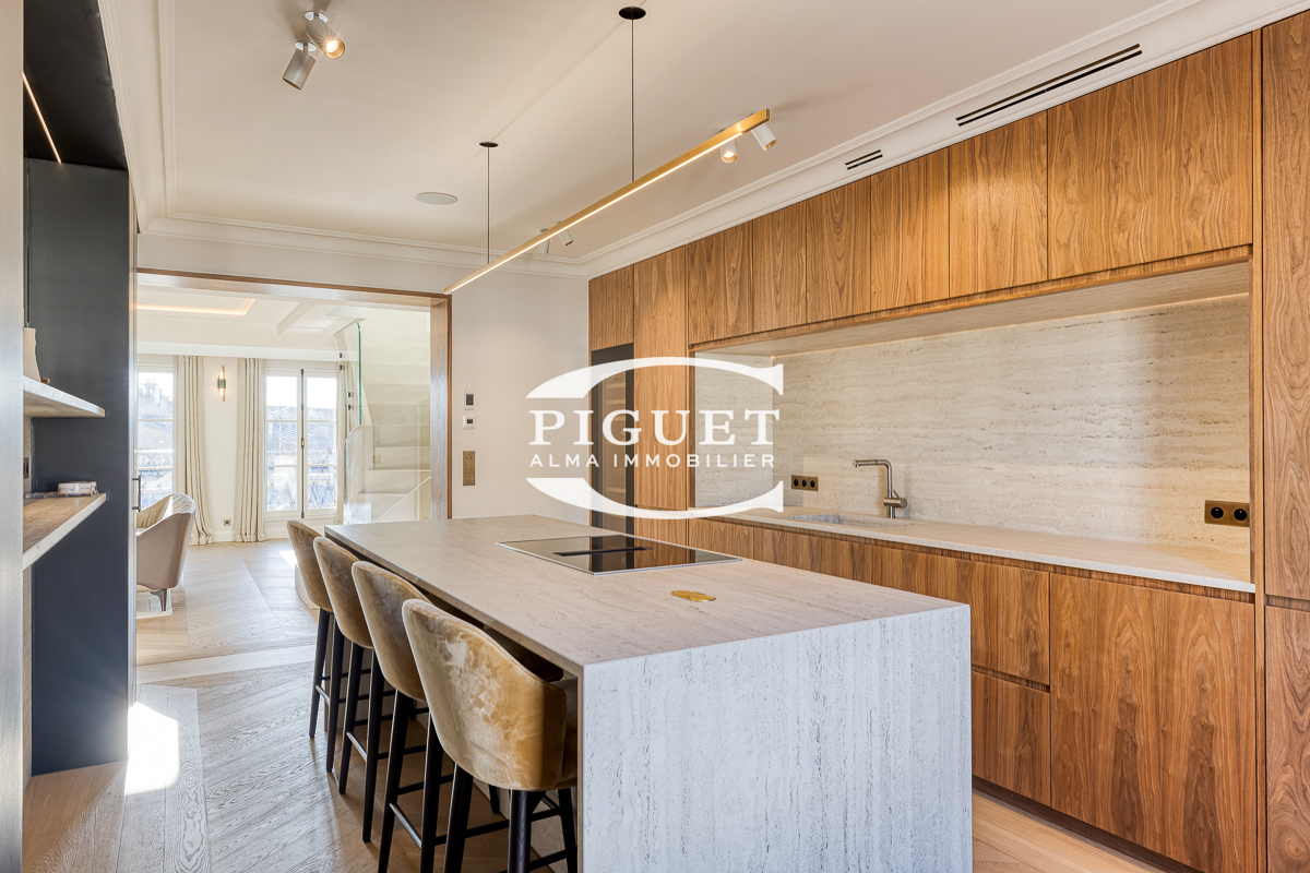 CATHERINE PIGUET, invites you to discover this beautiful apartment crossing 8 rooms completely restored in exceptional materials, it has a mezzanine forming an office space illuminated by a large glass roof that bathes the whole apartment in bright light, the spirit is very contemporary, combining parquet, precious wood, glass, metal making this place a true architectural masterpiece.