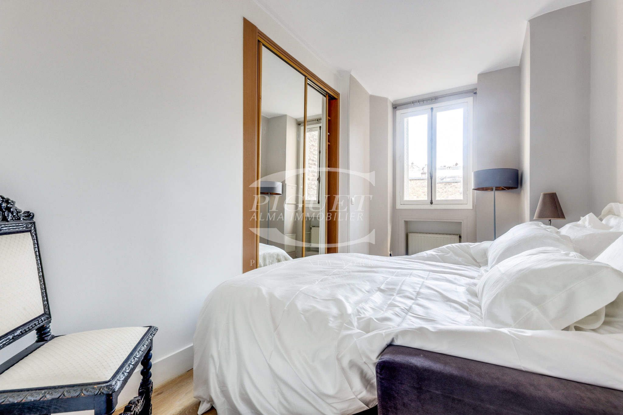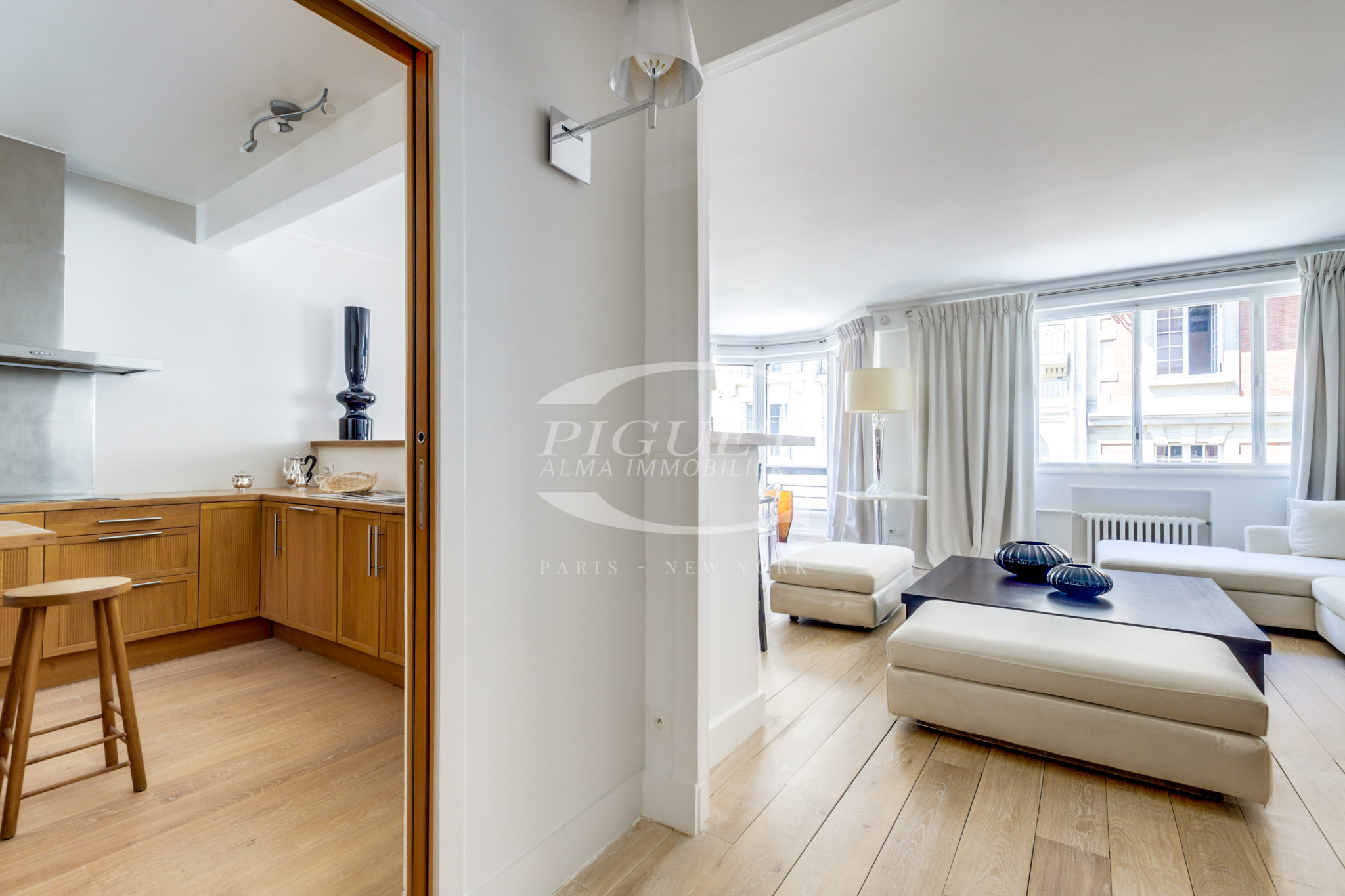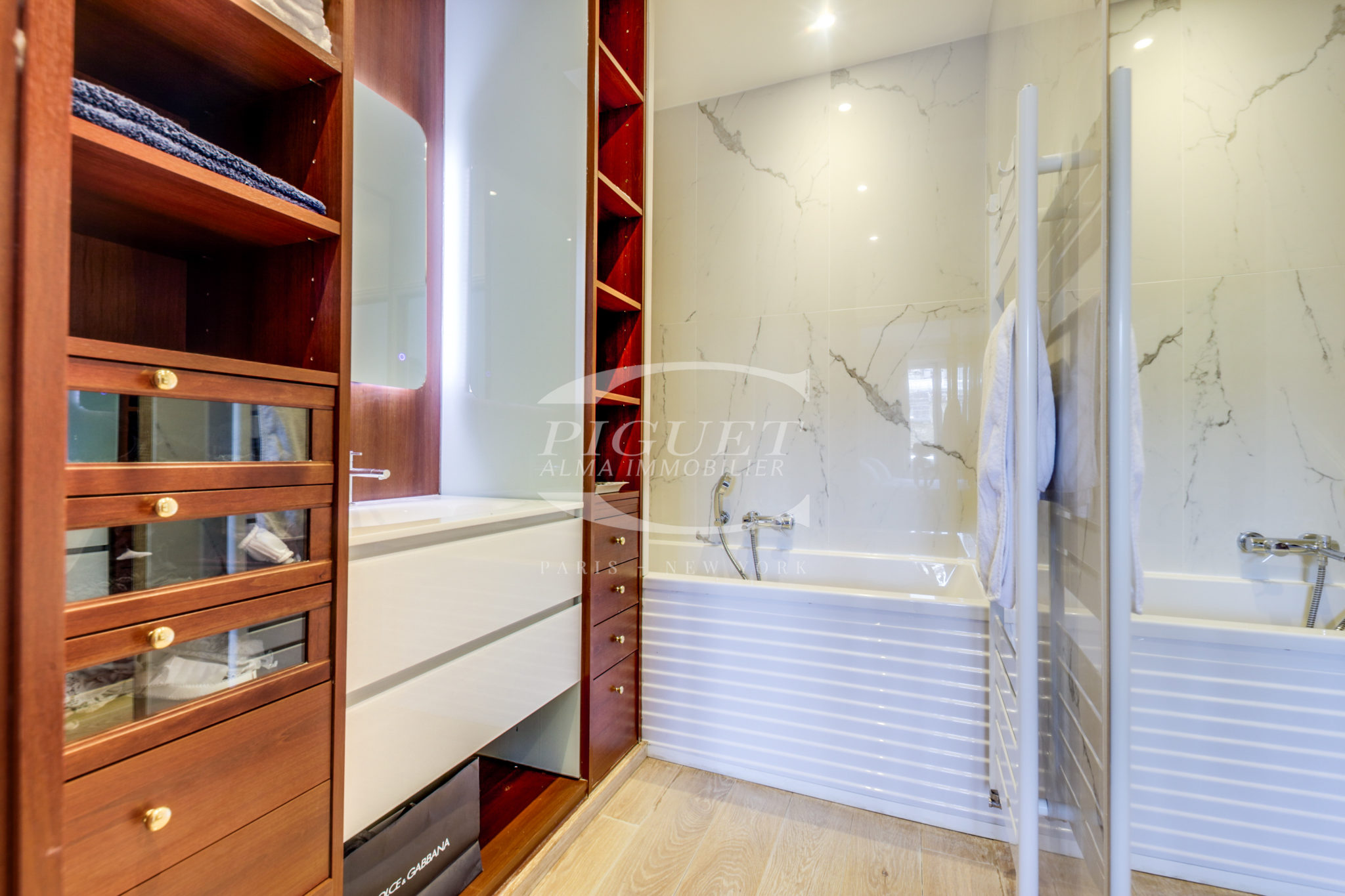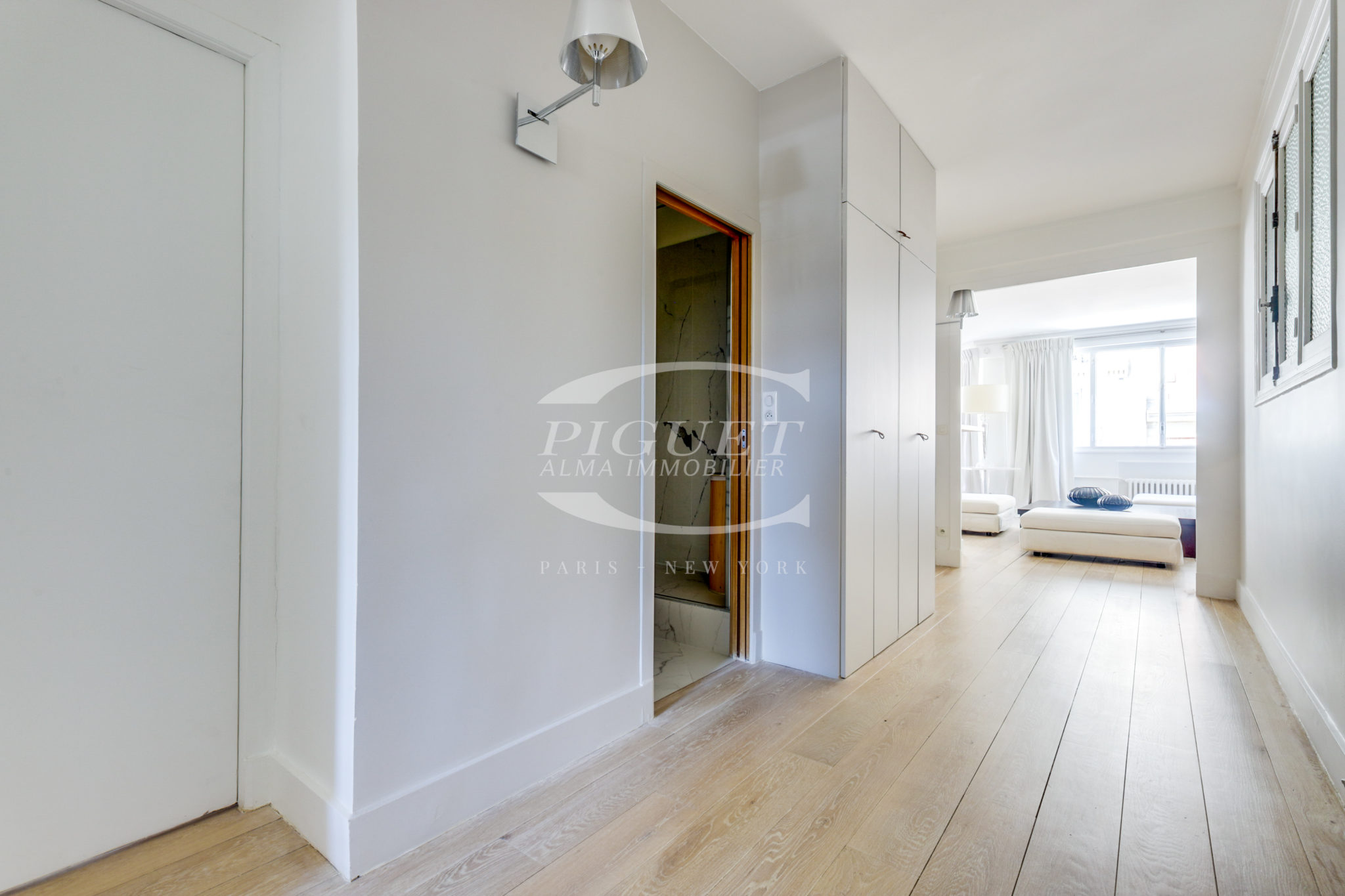 CATHERINE PIGUET invites you to discover a beautiful 4-room apartment completely restored in high quality materials (oak parquet with wide slats throughout the apartment), located near the American Church and 50M from the ALMA bridge on the 4th floor in a luxury building built in 1928 in Art Deco style, the reception was treated in a “loft” spirit with an bow-window, allowing an open view of the Seine, it is crossing with a south/ west and quiet exposure, the rooms overlook a large bright courtyard. The plane is compact. Located close to the rue Saint Dominique and the Gros Caillou district where all the shops are located as well as the best Parisian schools (La Rochefoucauld, the American university). THIS APARTMENT HAS UNDERGONE A LUXURIOUS RENOVATION. +33.6.07.43.81.80