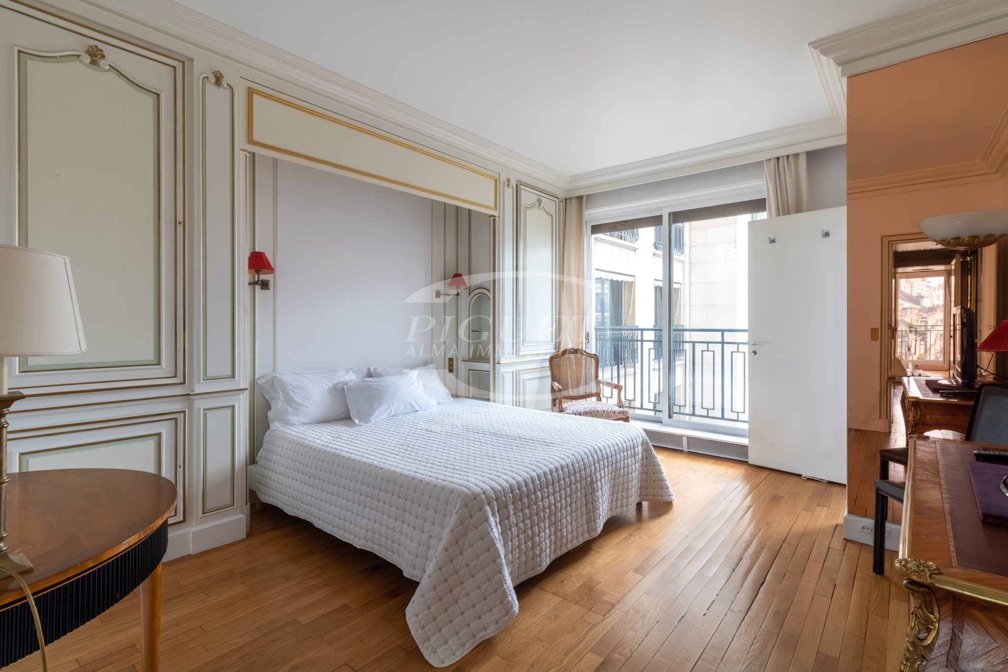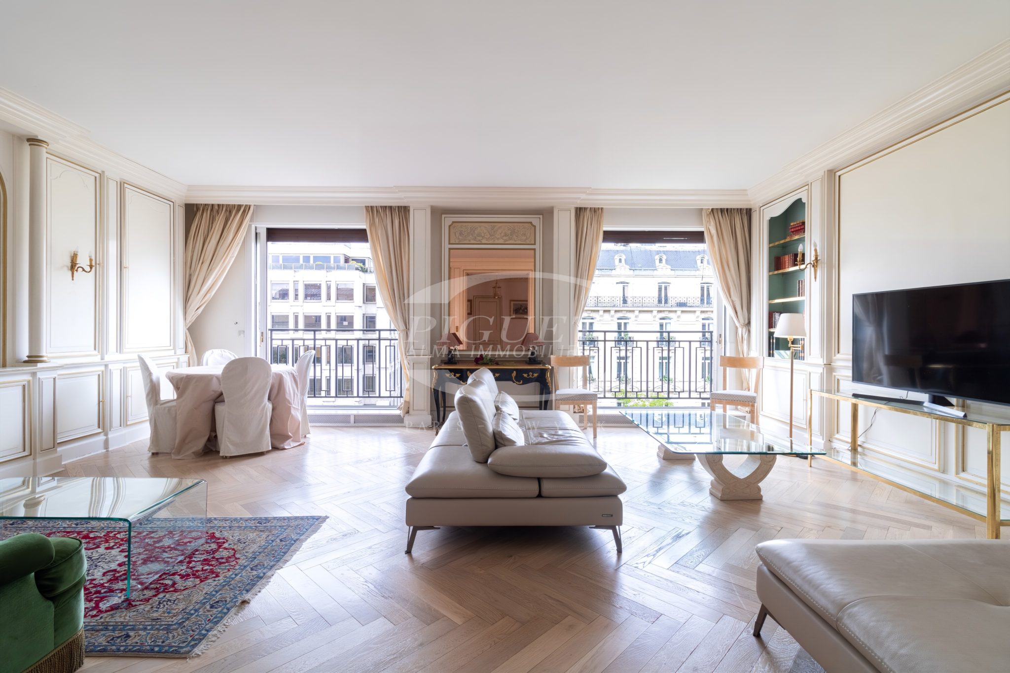 CATHERINE PIGUET vous invite à découvrir parmi les plus belles boutiques de luxe directement sur l’avenue Montaigne, au 5ème étage d’un immeuble de très grand standing avec doorman 24H/24, un luxueux appartement de 5 pièces très lumineux bénéficiant d’une double exposition Sud/Ouest, d’une vue dégagée, sans vis à vis. L’état général est excellent. +33.1.40.70.95.10