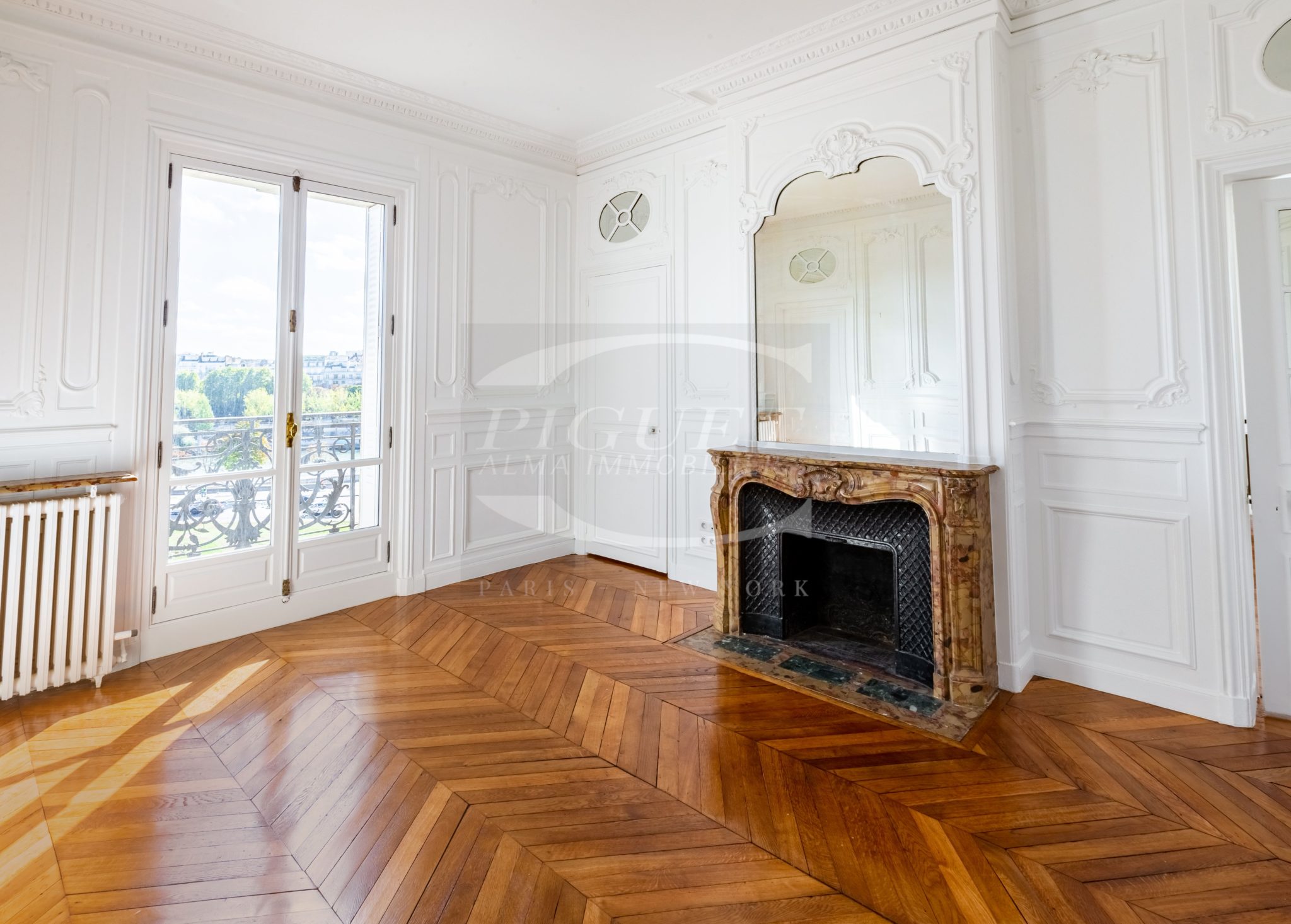 CATHERINE PIGUET vous ouvre les portes d’un magnifique appartement de 4 pièces face à la Tour Eiffel, sans aucun vis à vis, plein sud, bénéficiant de splendides volumes 3M40 de hauteur sous plafond, la luminosité est exceptionnelle. Cet appartement dégage énormément de charme avec sa réception en rotonde, ses moulures d’époque et son parquet Versailles, il vient de faire l’objet d’une rénovation totale de très grande qualité. Entièrement climatisé.