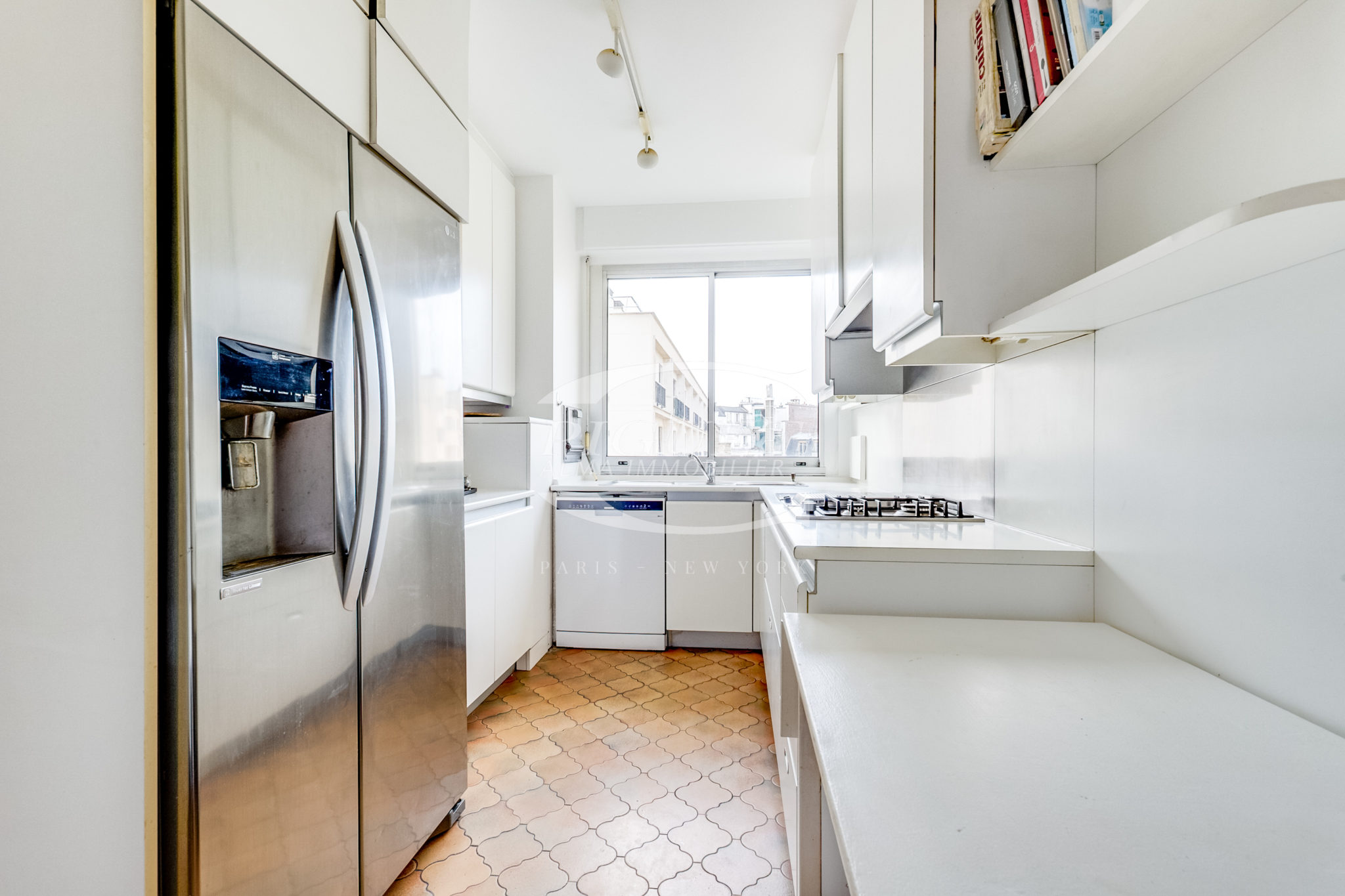 Situé au calme absolu, l’appartement est baigné de lumière grâce à une luminosité constante tout au long de la journée.